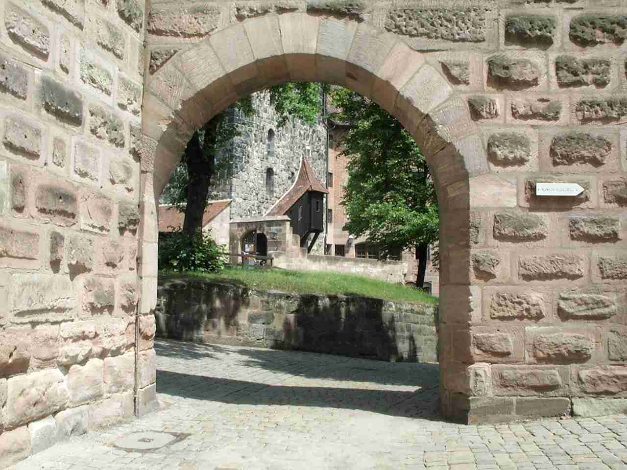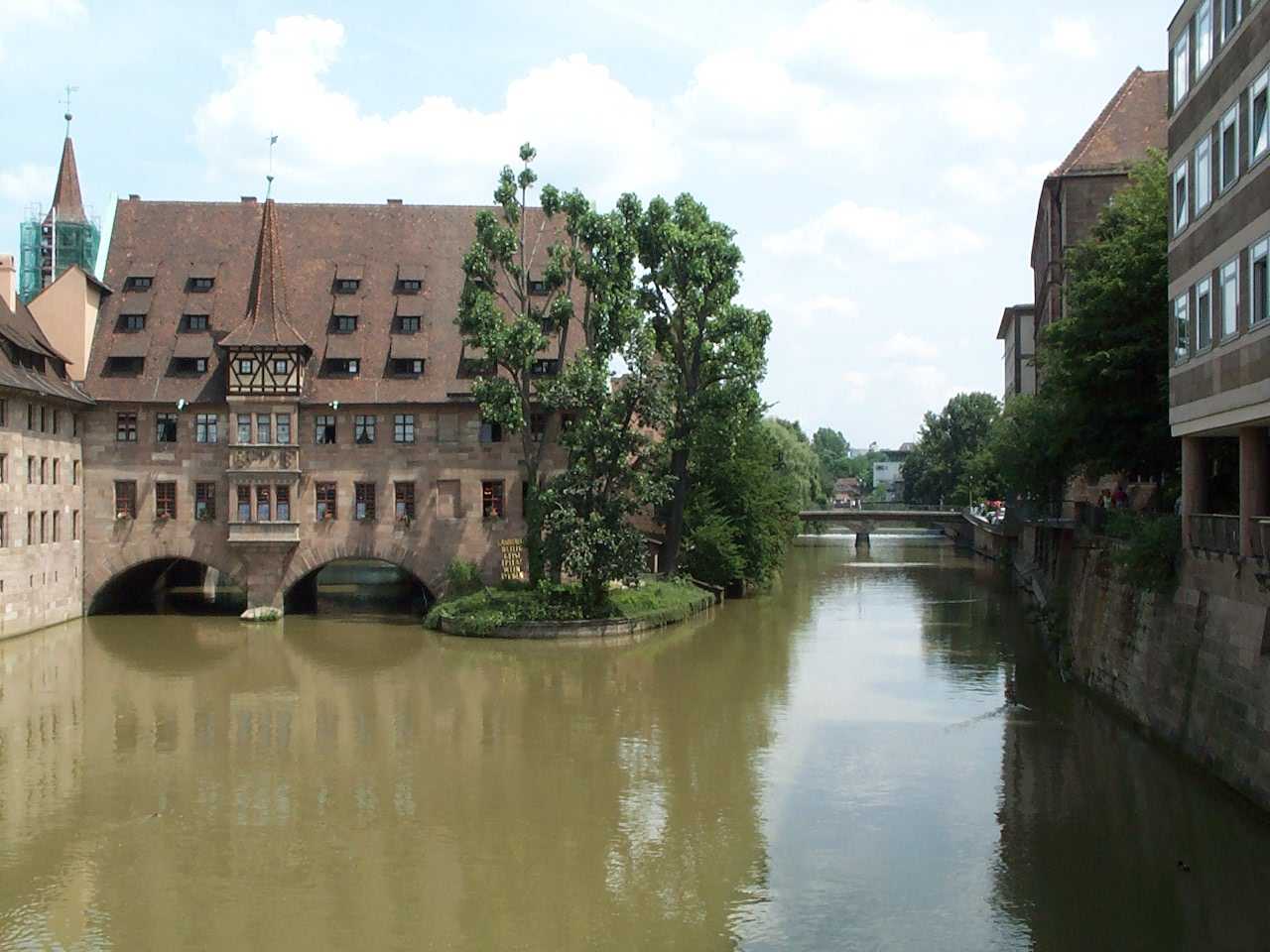 Then the walking tour goes to an island in the Pegnitz, and the guide book