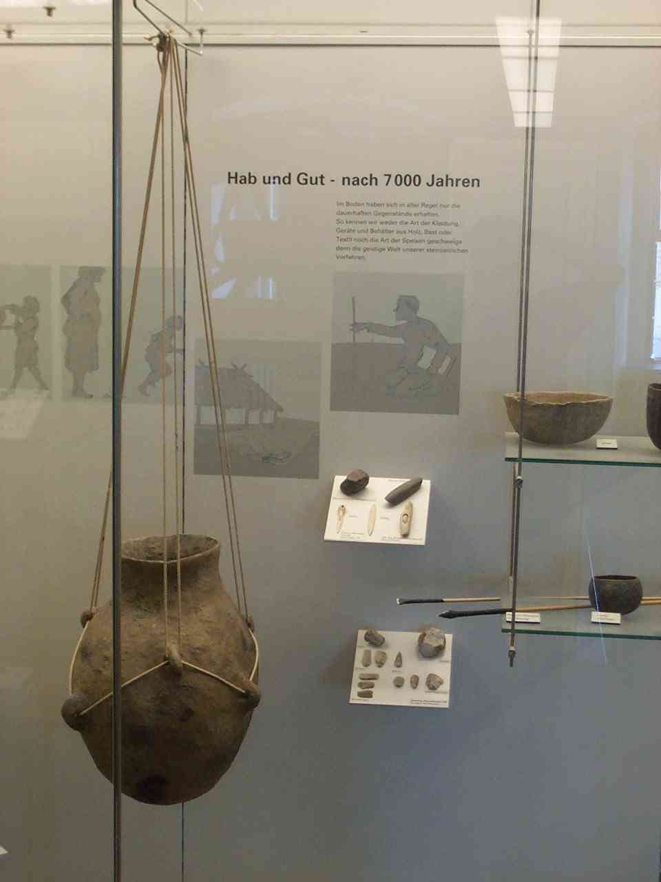 The museum covers the history of people in this area. They have some ancient artifacts that appear to be whole, such as this 7000-year-old urn. There is a map that shows dots where artifacts have been recovered in the region, and it is dotted all over—people have been living here, and leaving their stuff, for a long time. Then the Romans came and ordered everybody around for a while. The museum has some sculptures and art from that time (around 2000 years ago), including mummy portraits.