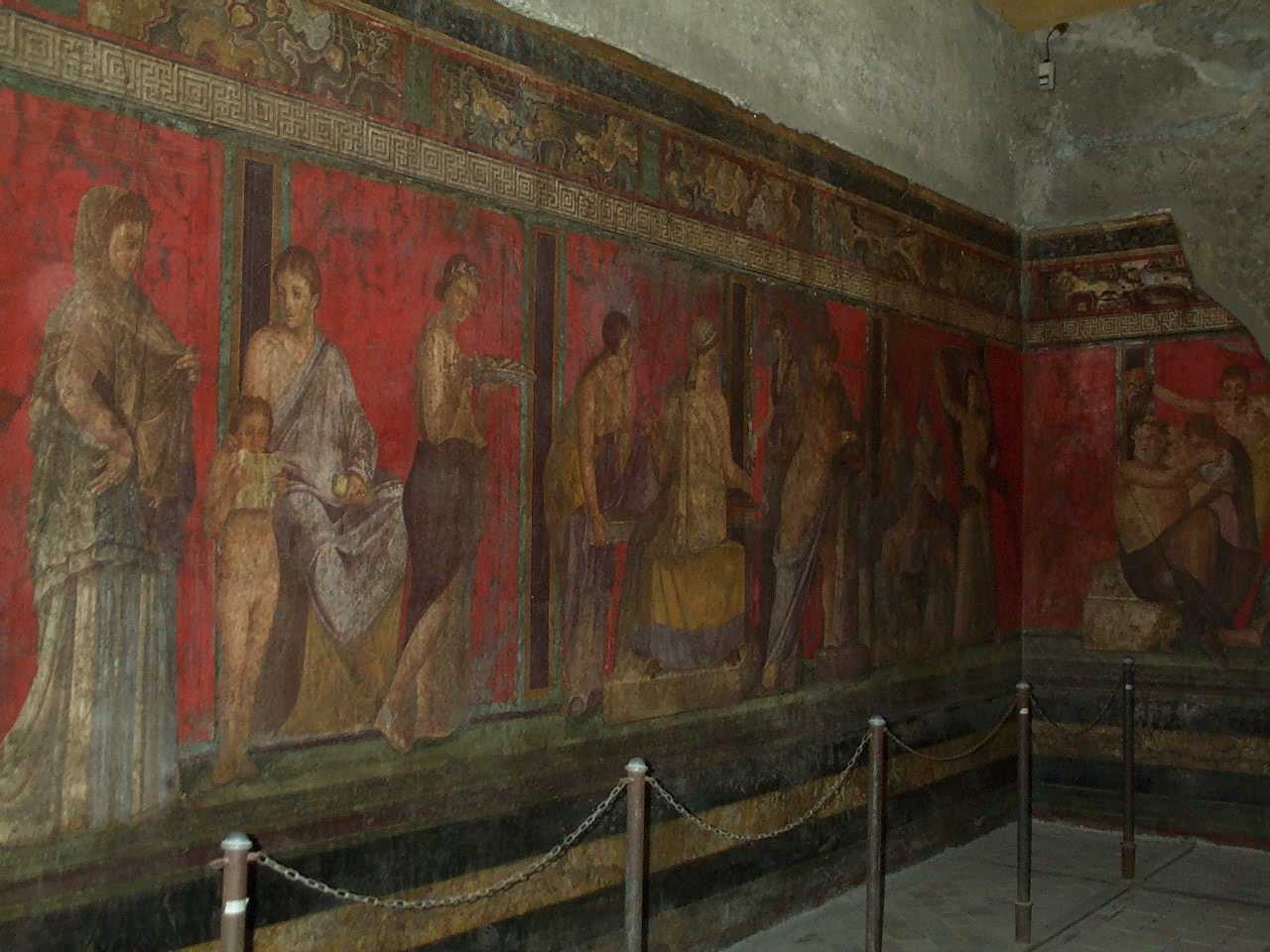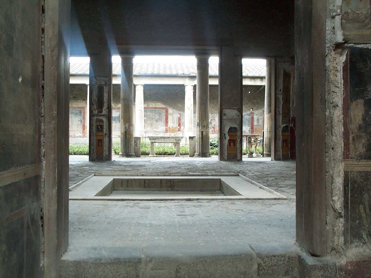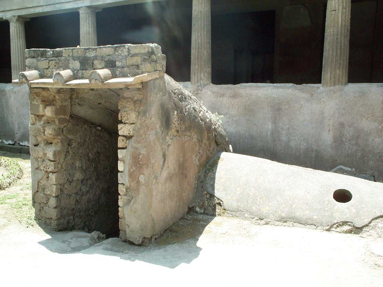 In the House of the Vettii, many bronze and marble fountain statues have been left in place, ancient lead pipes have been put back into operation, and the design of the flower beds has been reconstructed from the holes left by the roots of the plants.