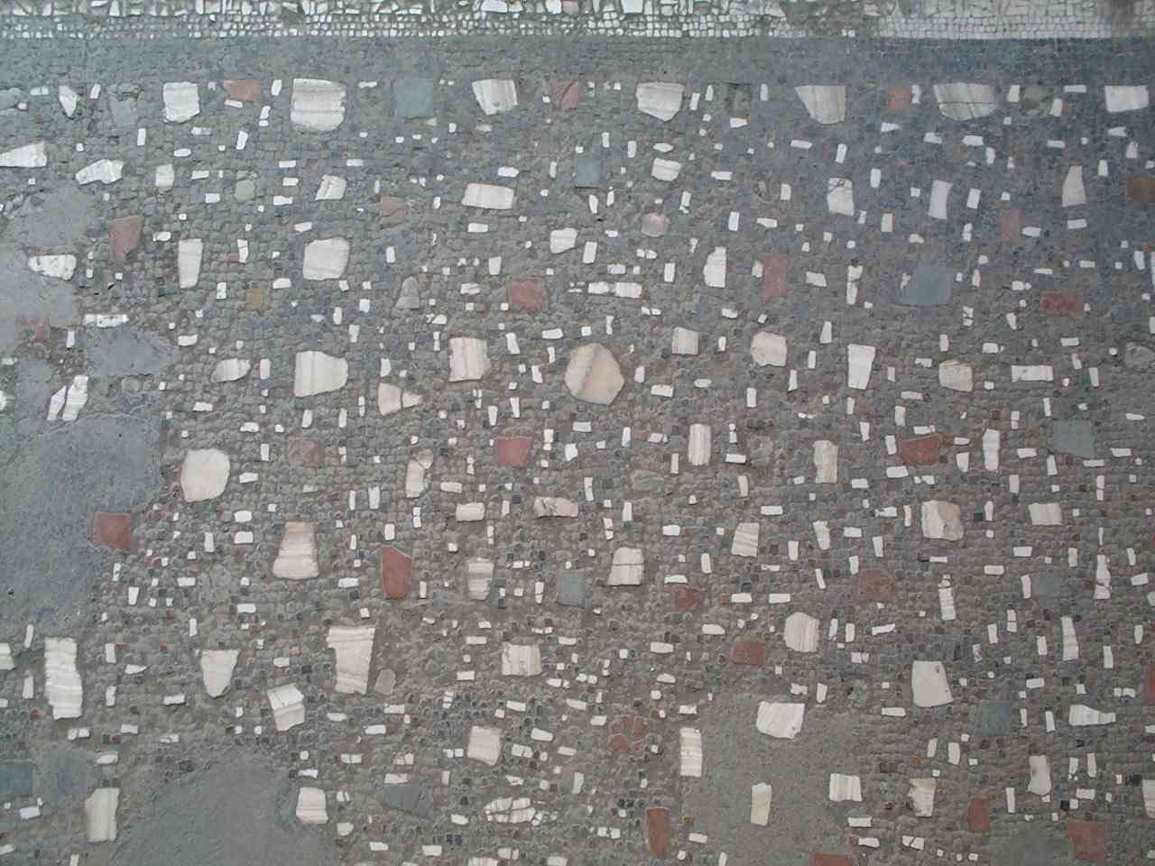 In one area of the ruins, portions of the original sidewalk are still present—little colored stones in one place, little red stones in another. Similar patterns appeared at Villa dei Misteri, and I took photographs to use as web-page backgrounds.