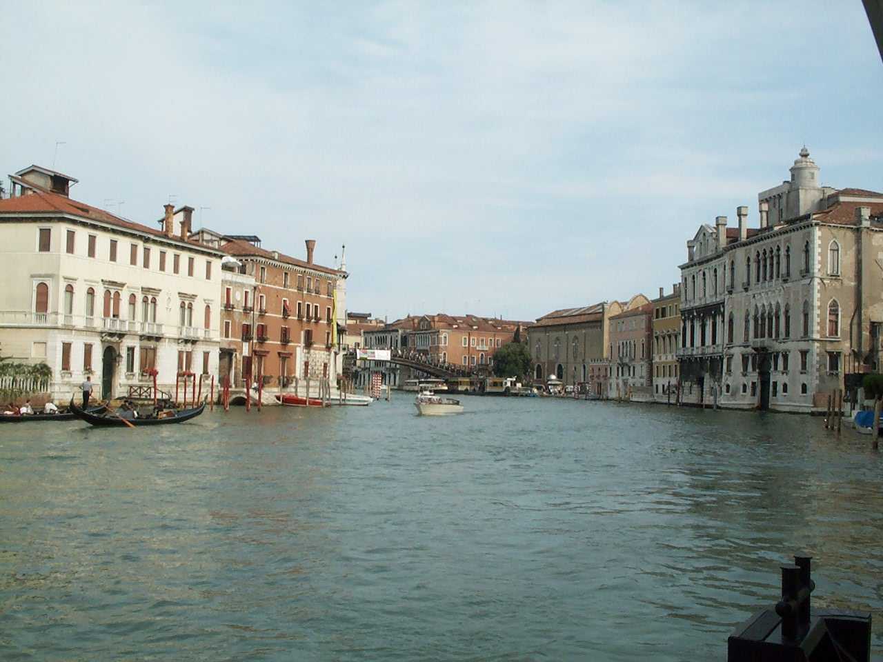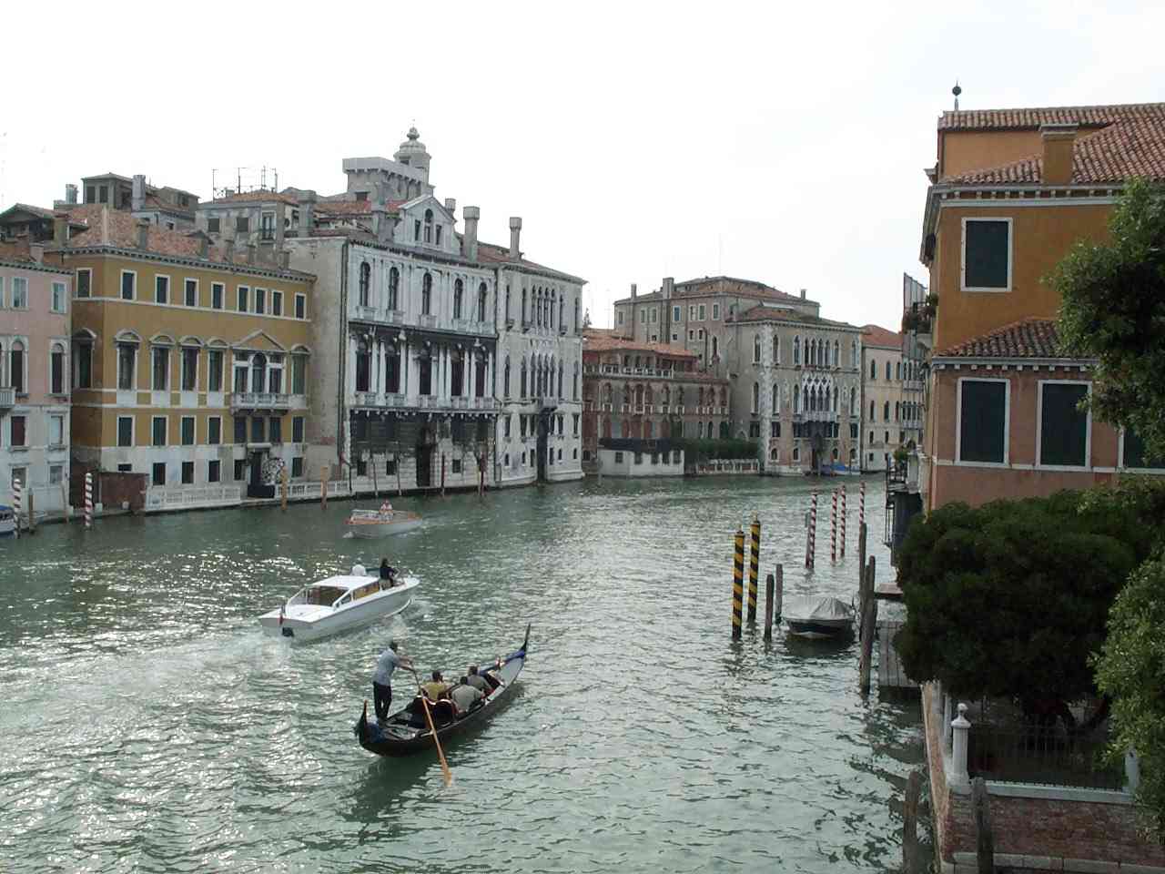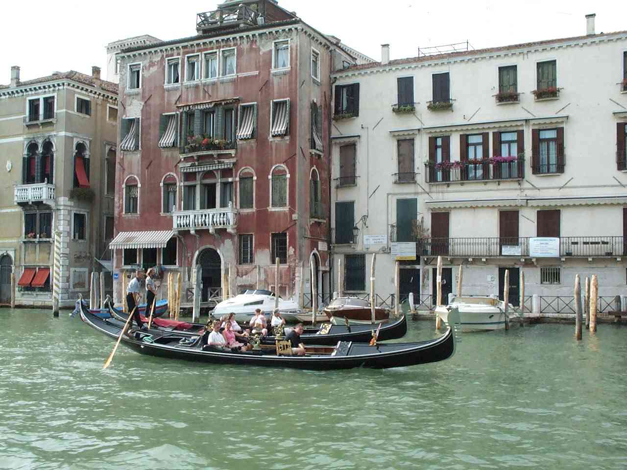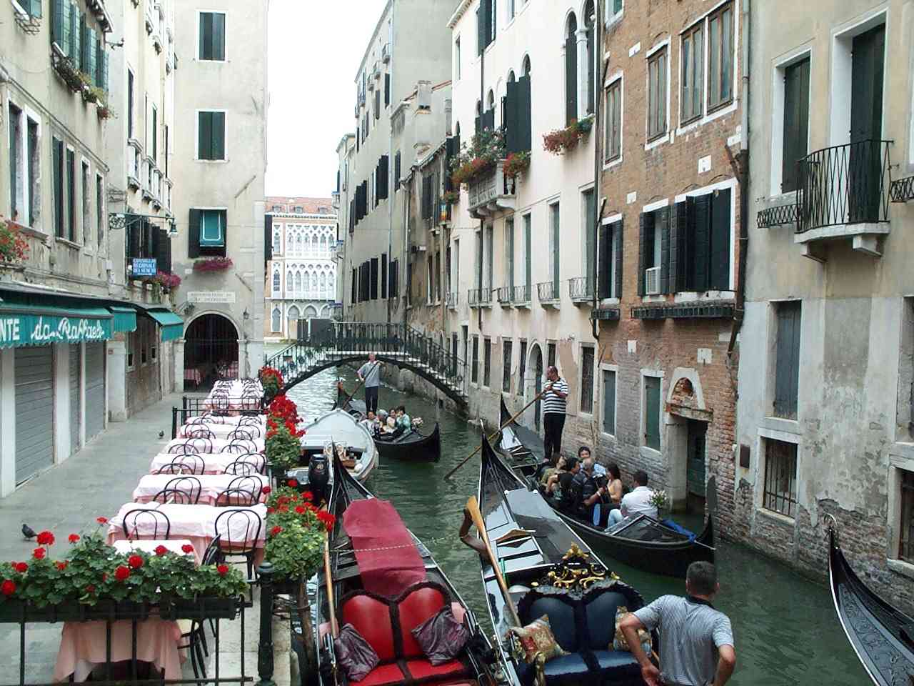 | Gondola at end of street. | Gondolas. | Walkways and bridges. | Grande Canal. |