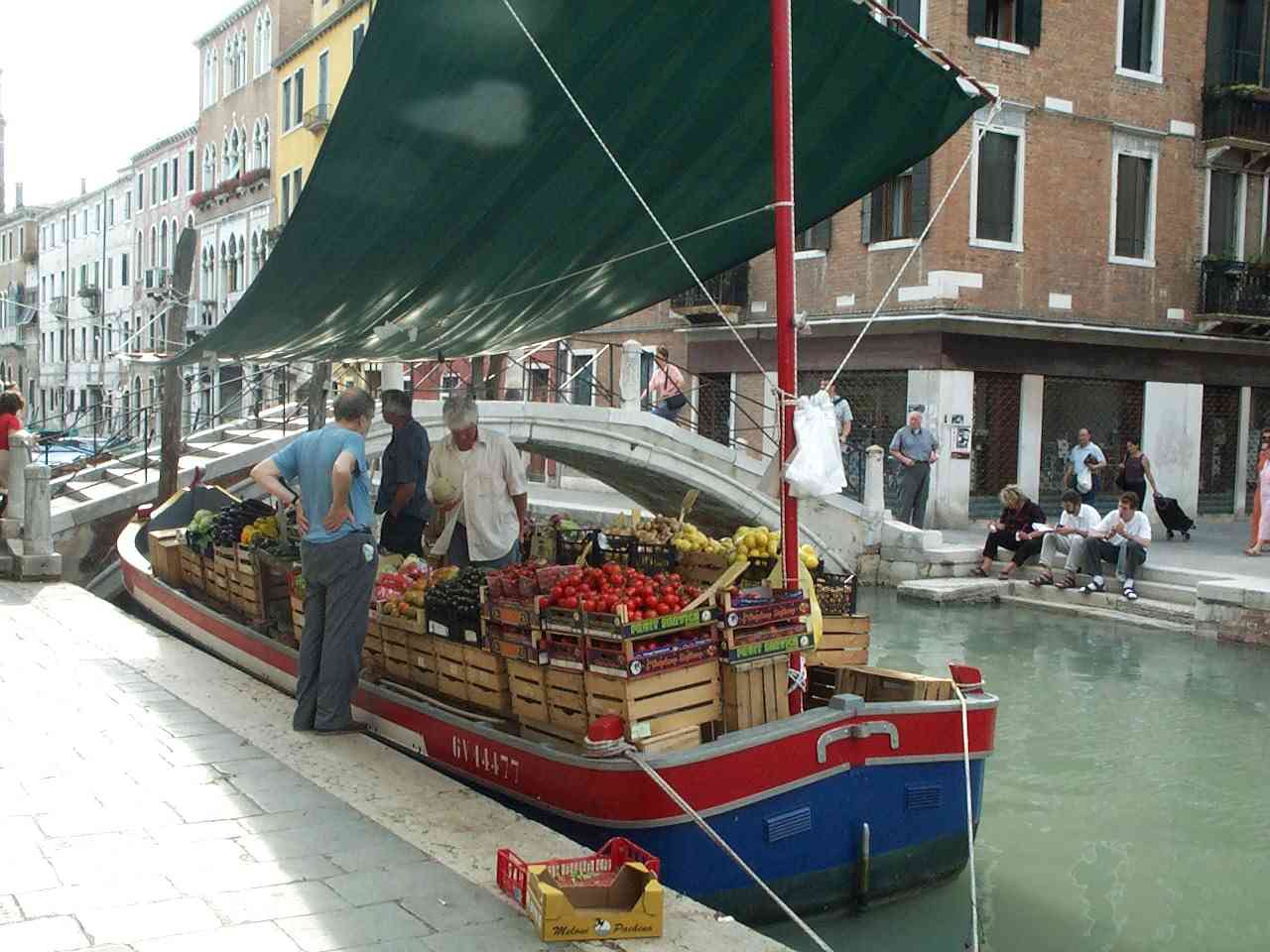 | Fruit and vegetable boat. | Grande Canal and Ponte dell'Accademia. | Gondolas on Grande Canal. | Islands. |