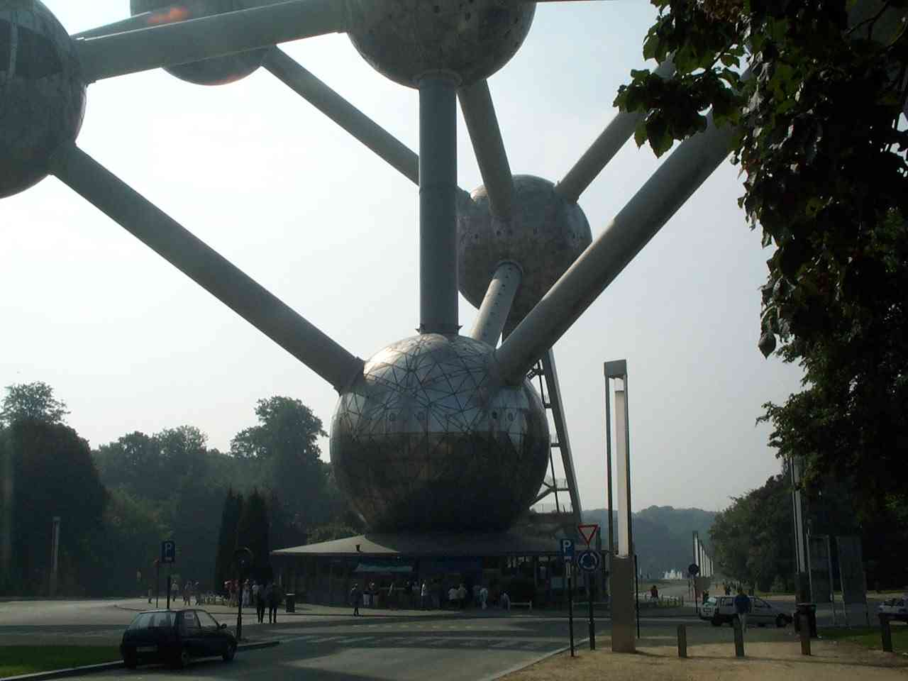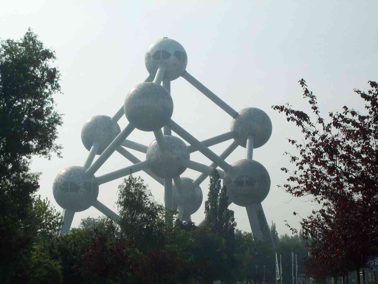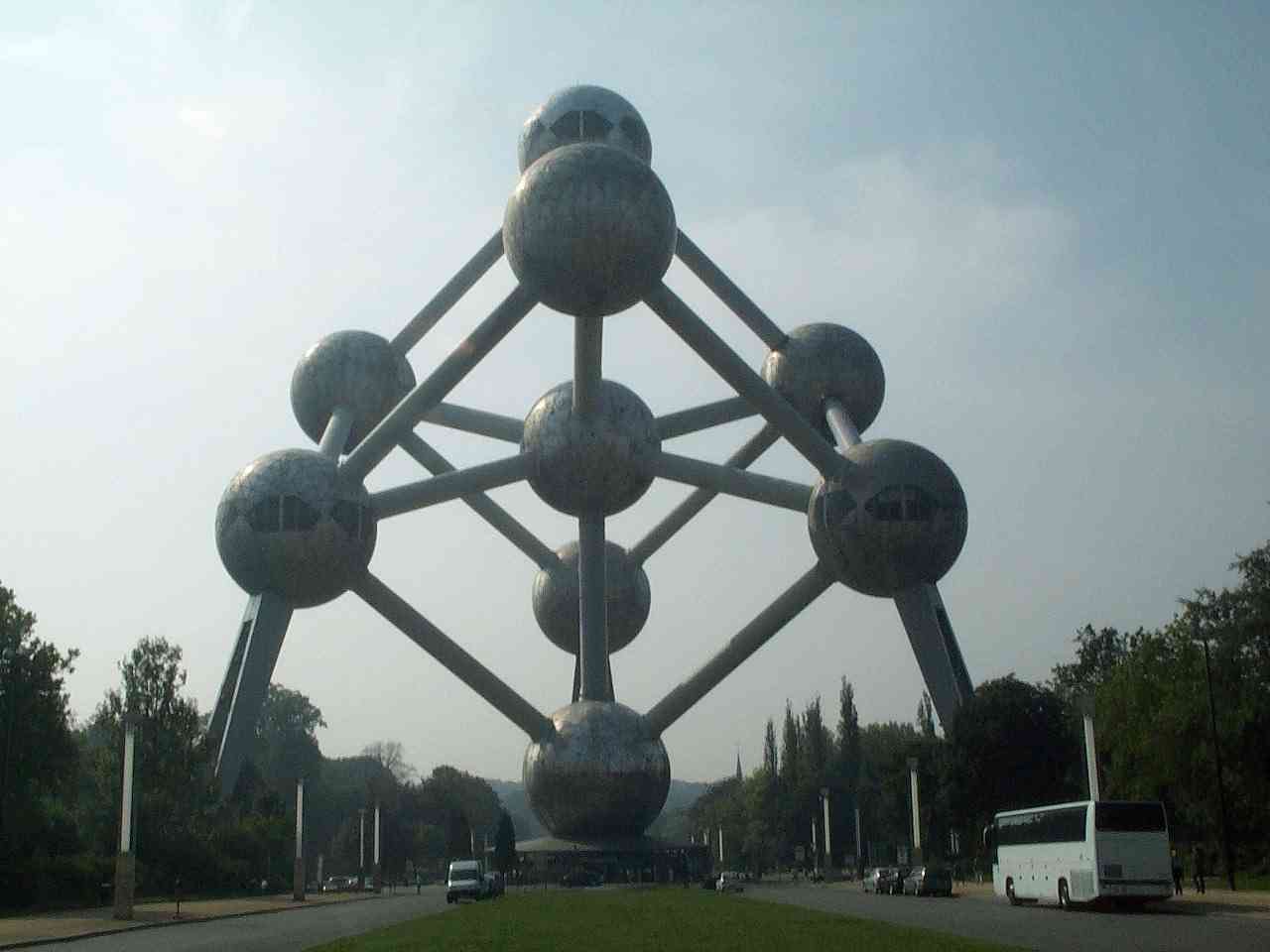The Atomium represents a crystallized iron molecule, expanded 150 billion