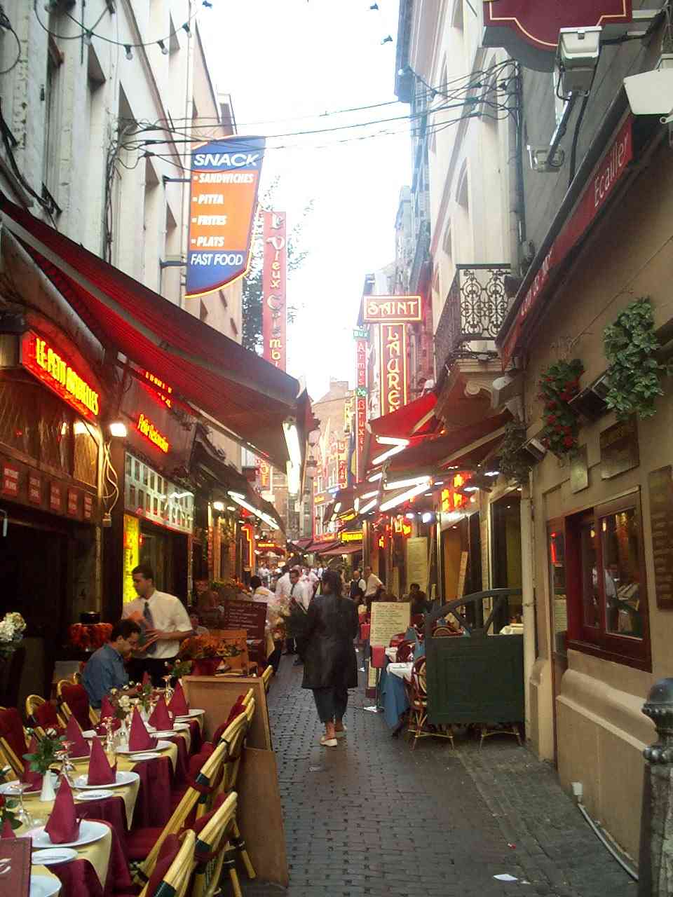 the tourist center of Bruxelles. It was mid-evening (early by European