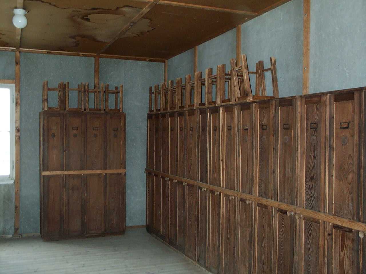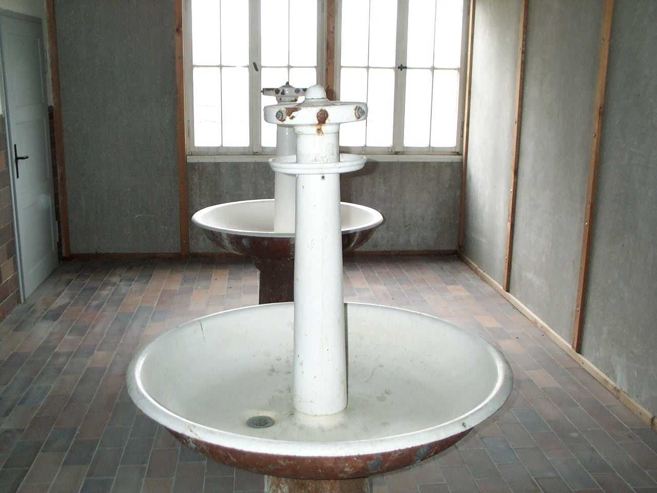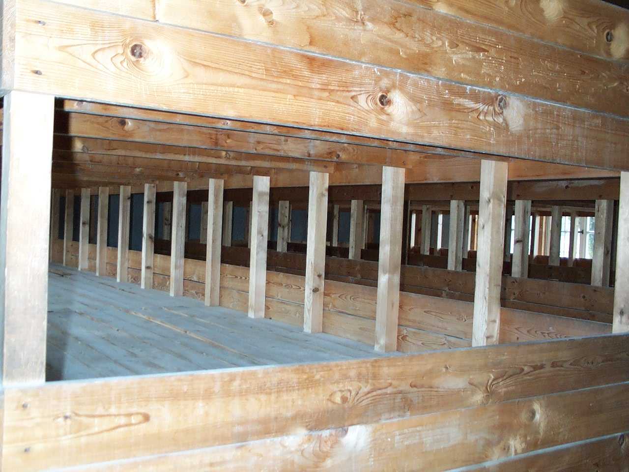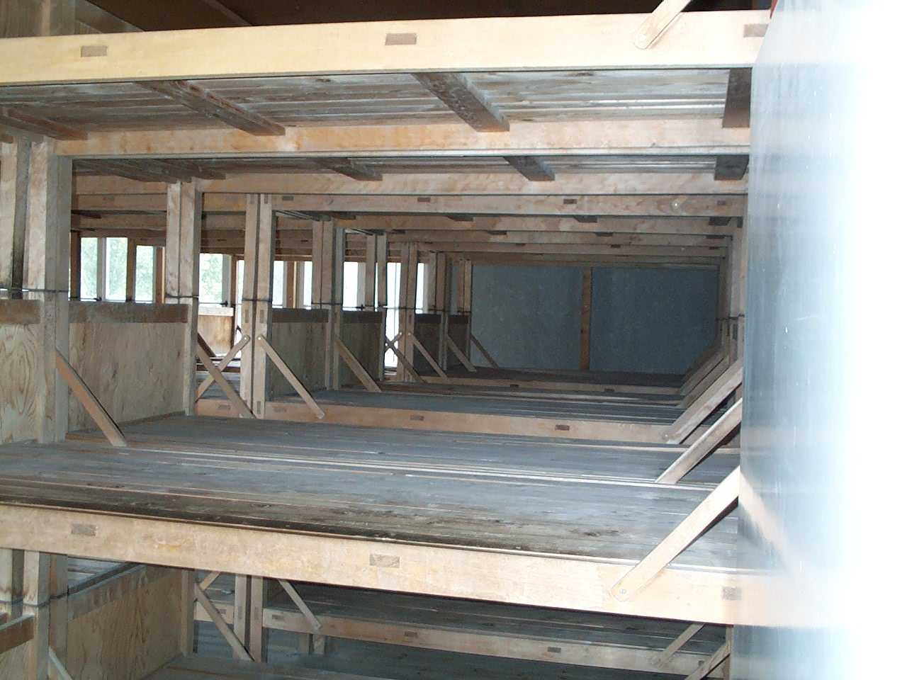 | First-stage bunks. In the first years of the camp, each prisoner had a separate bunk with a straw mattress. |