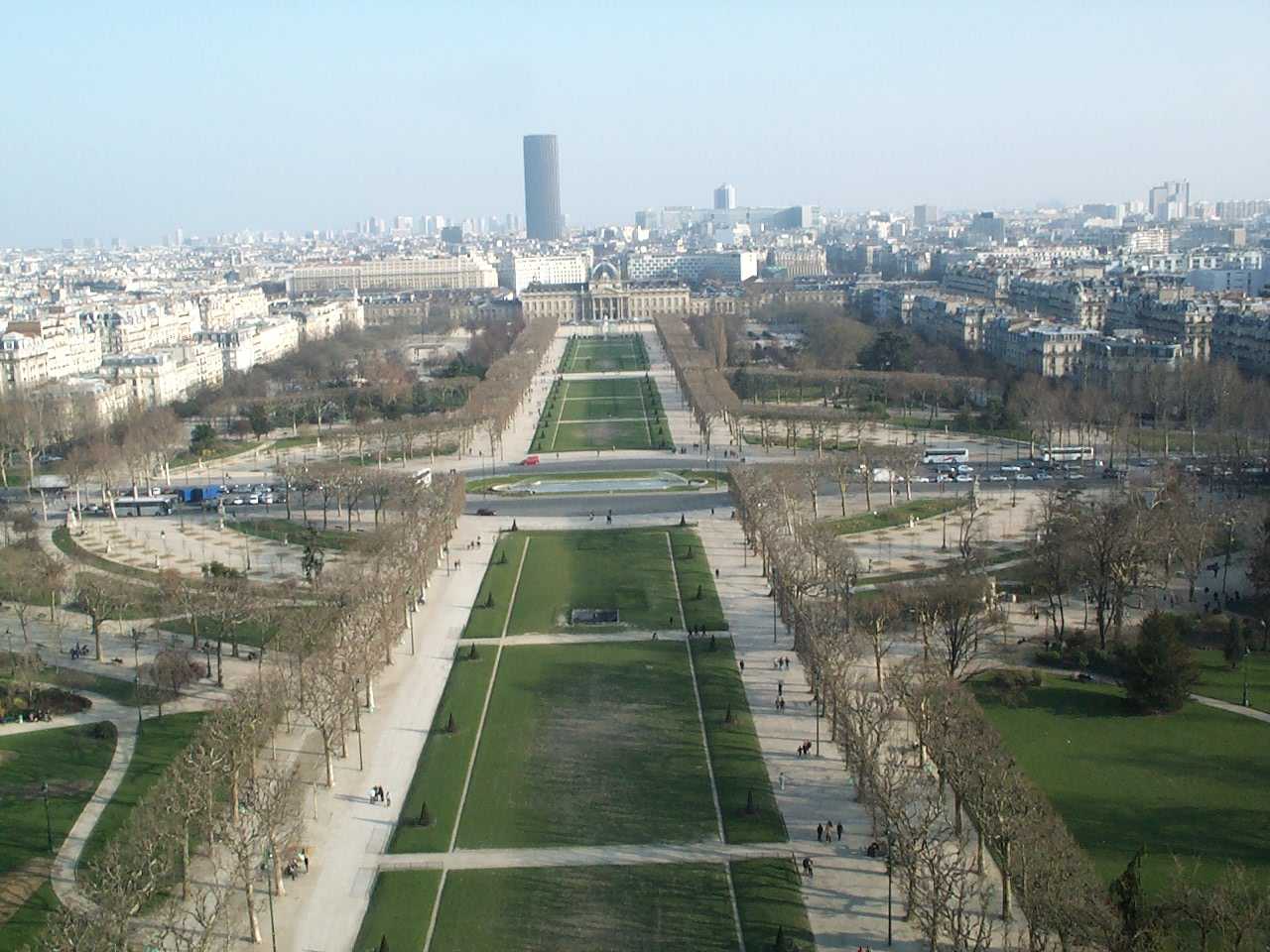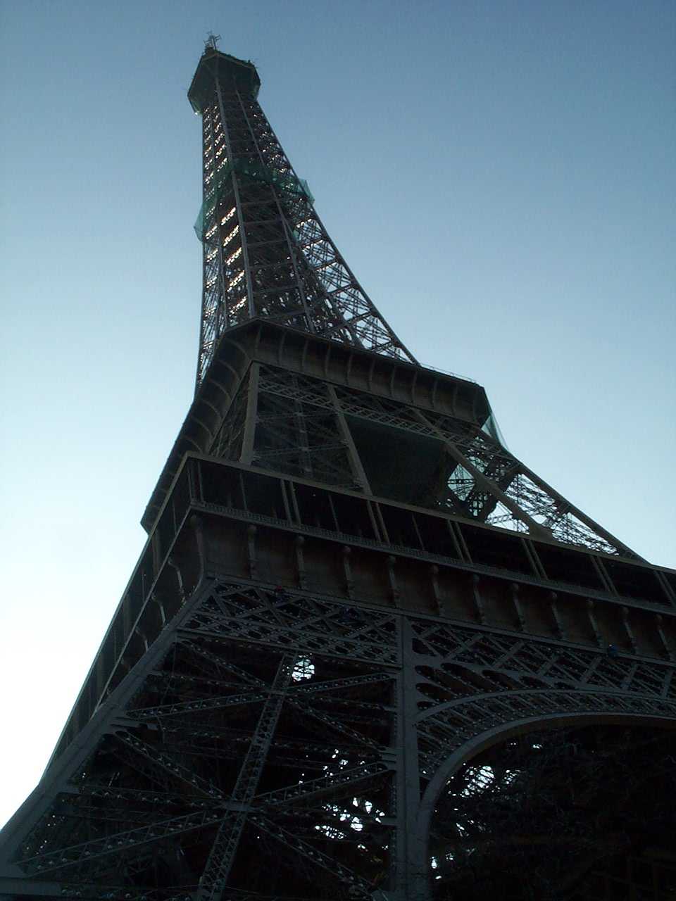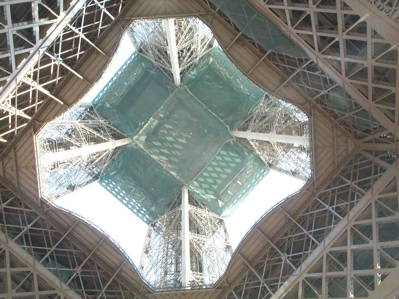 | Tour Eiffel seen from east end of Parc du Champ de Mars. | Looking up at Tour Eiffel from base. | Tour Eiffel seen from underneath. |