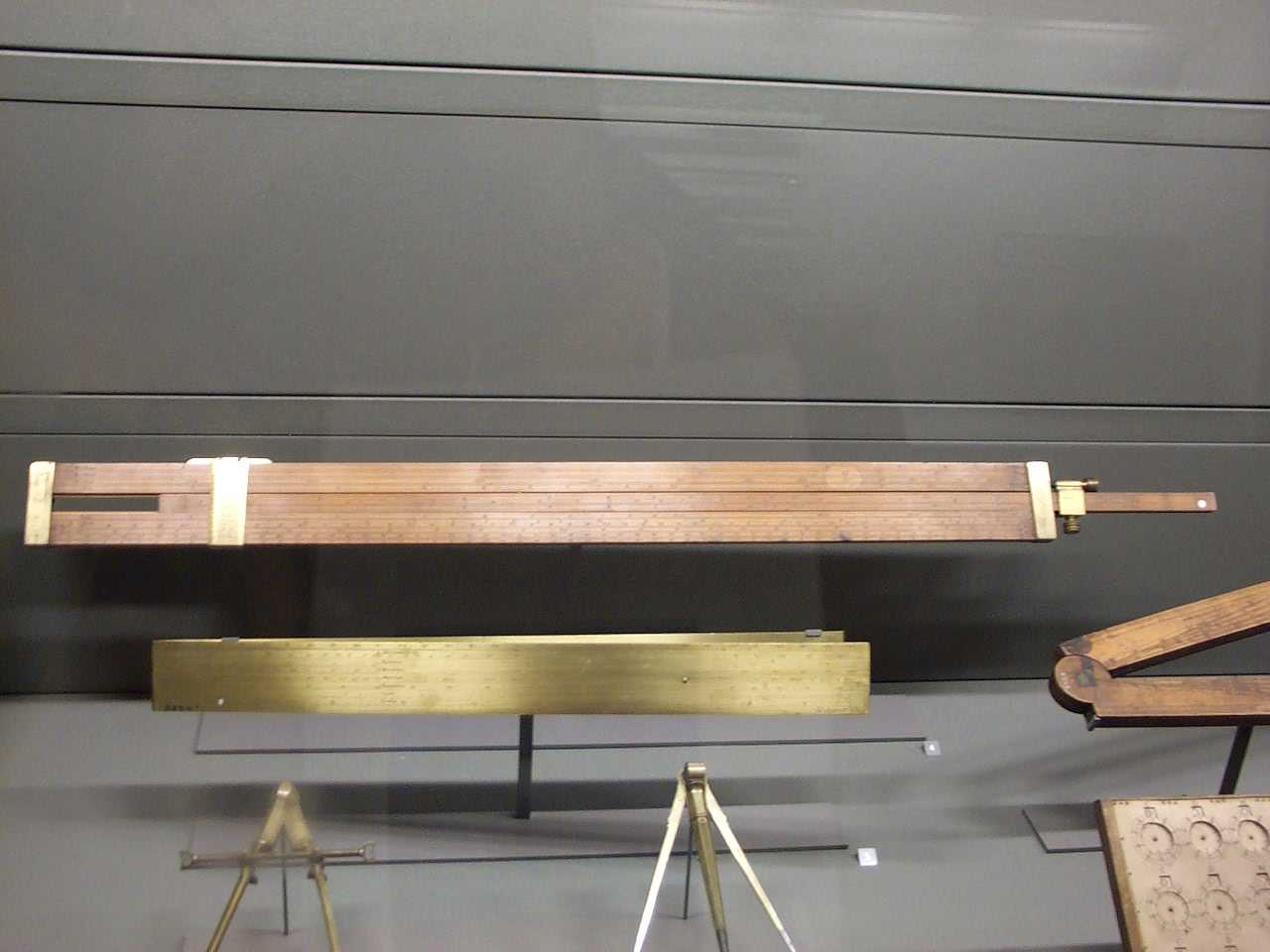 | Slide rule by Partridge, 1671. | Device for measuring ballistic paths. | Apparatus for measuring the speed of light. |