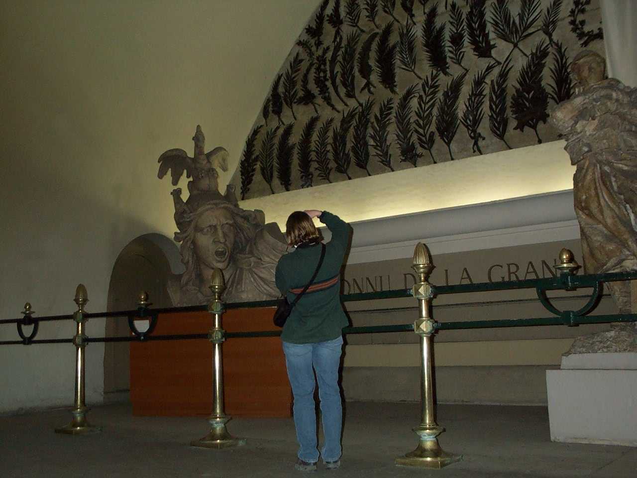 Simone said the Louvre said it is the biggest building in the world, but I do not believe that. The Pentagon is pretty big, and any decent skyscraper should beat the Louvre. I think the Louvre may be just the biggest museum building in the world. Anyway, that image of La Gioconda to the left is just 2880 bytes, so they obviously do not need all that much space to keep all the art.
