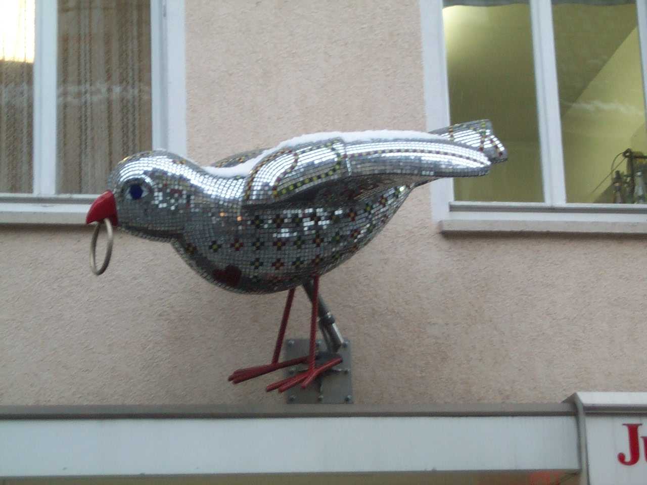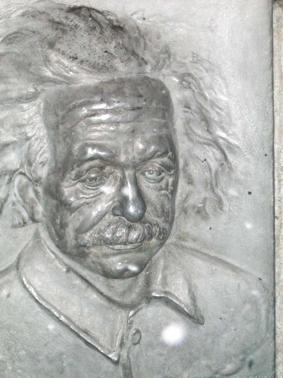 I remembered my camera this time and photographed eight new sparrows for you. I will add them to this journal over the next few days. I noticed the Einstein plaque above while I was photographing the book sparrow to the left. The plaque is near the monument of his birthplace, and it is a gift from India. The book sparrow is in front of a bookstore, but not the one where I got the German German book.