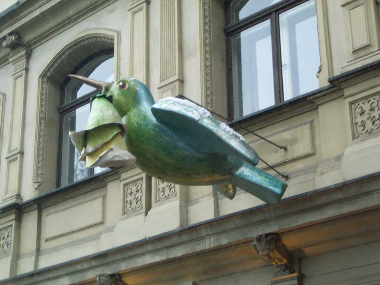 | Sparrow at Eitel Bek, a medium-sized department store. Eitel means vain. |