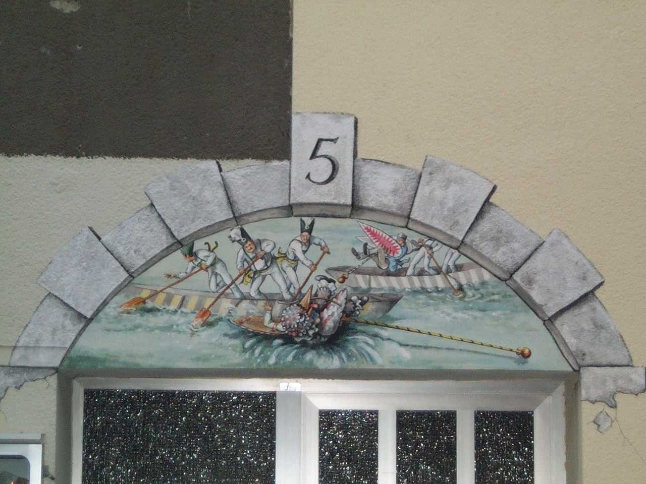 | Artwork over fools' guild door. |