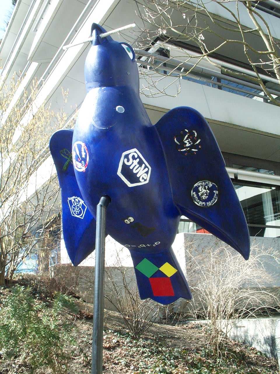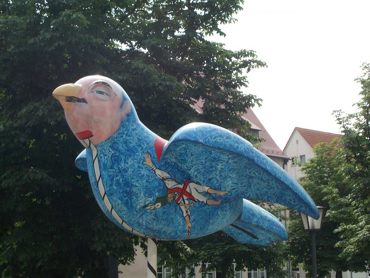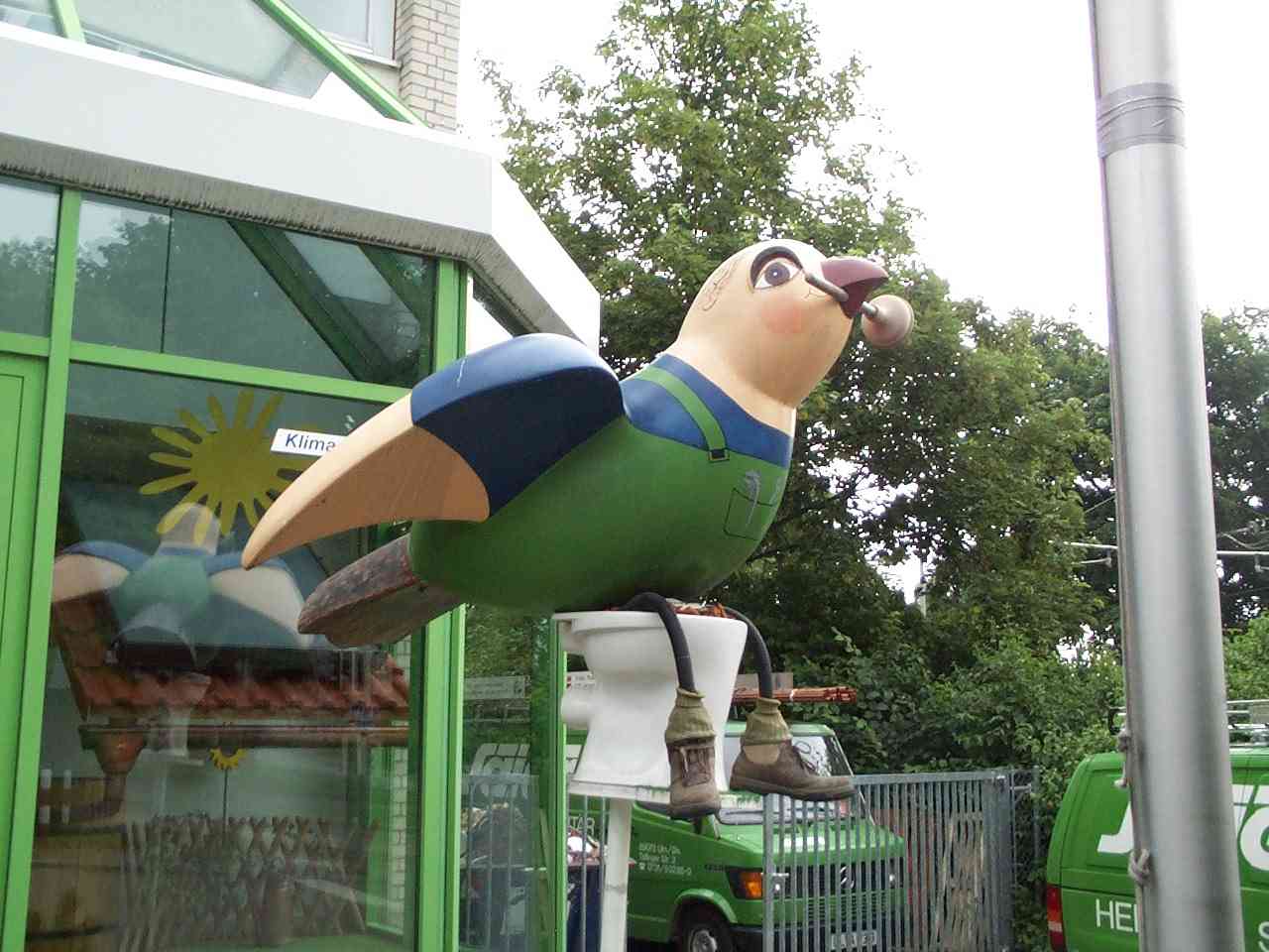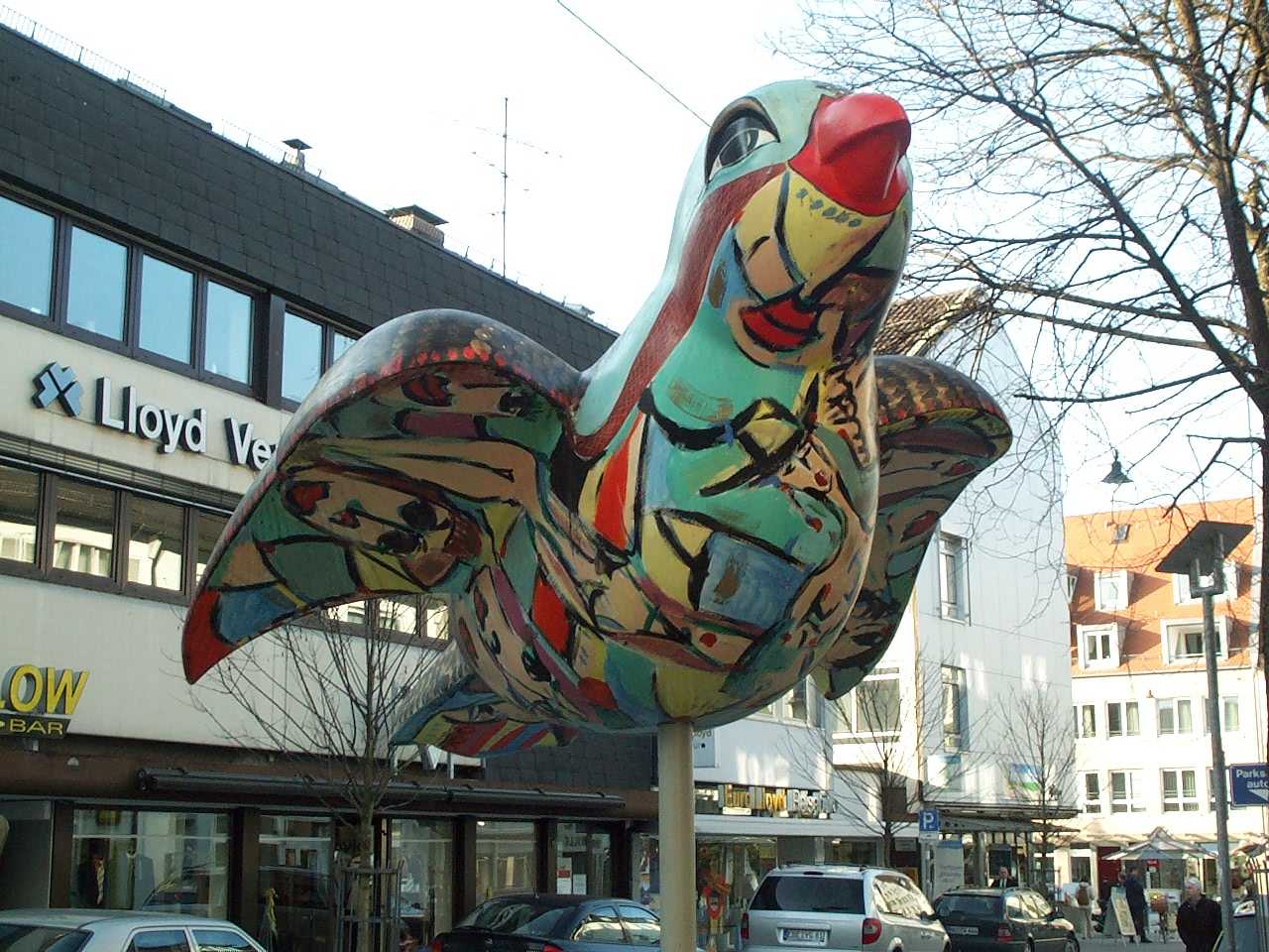 The sparrow appears throughout Ulm, as a team mascot, as cute sculptures
