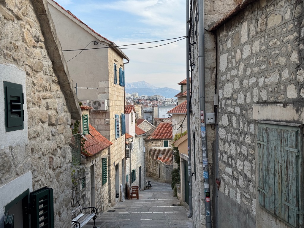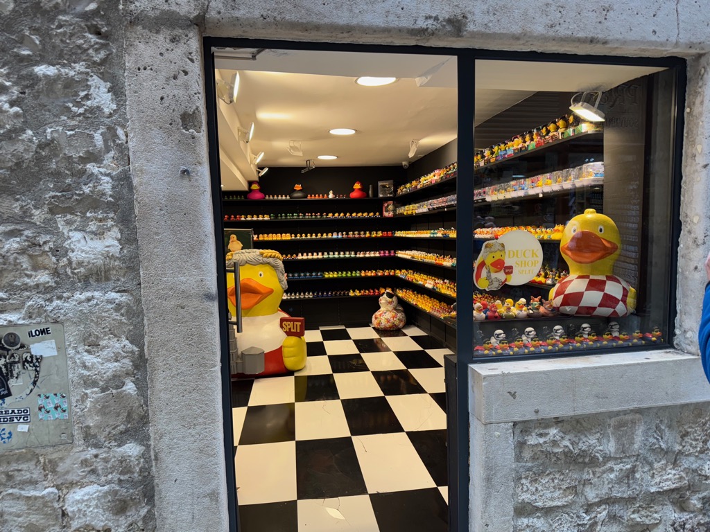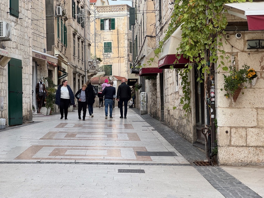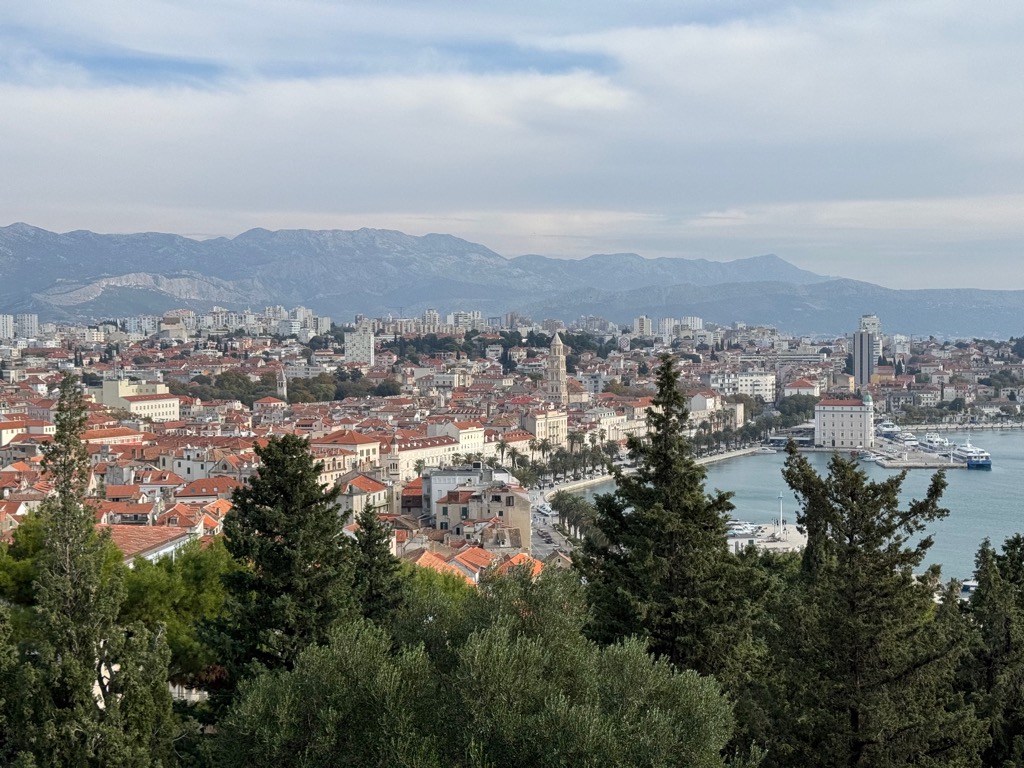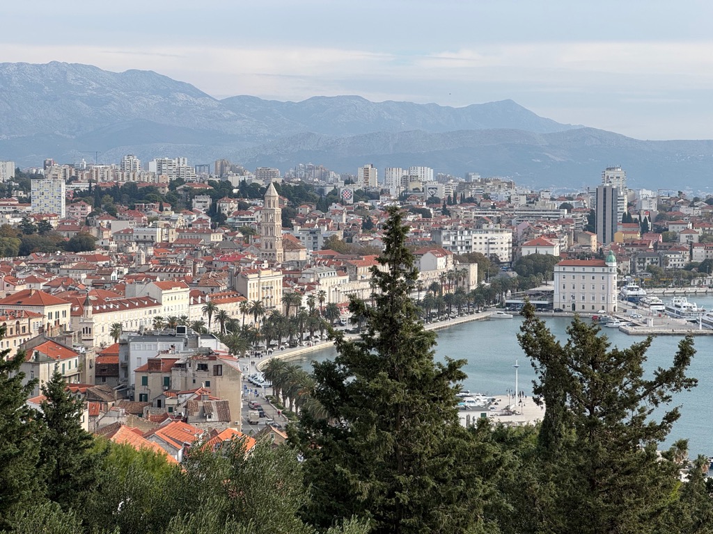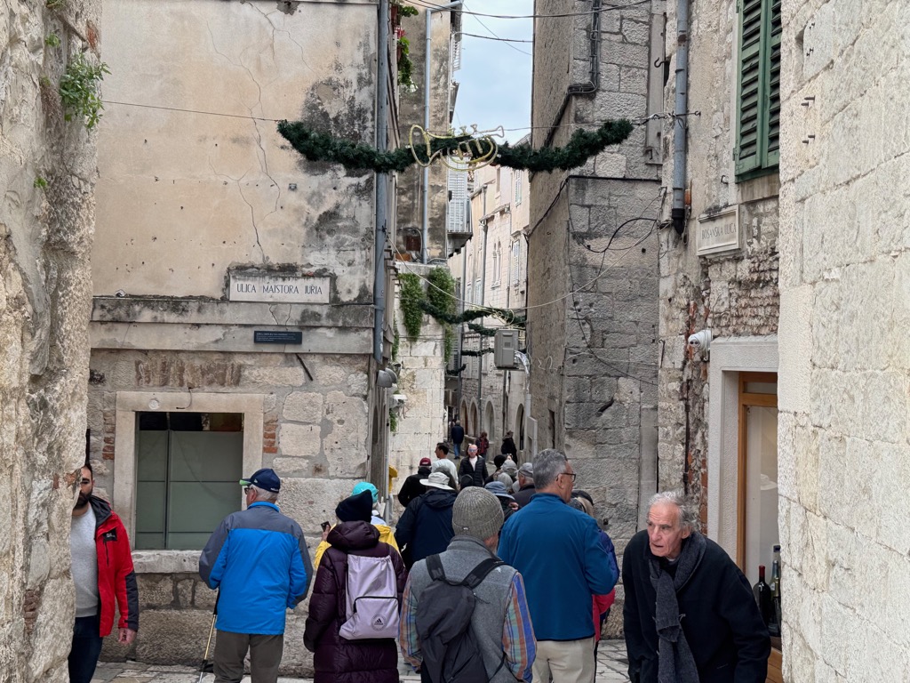The group activities started with a tour of Diocleatian’s Palace. Half of it was for Diocleatian’s personal use, and half was a military garrison. Nowadays it forms about half the old town of Split, with shops, hotels, and residences. Then there was a walk up a hill to see the town from above, followed by free time.