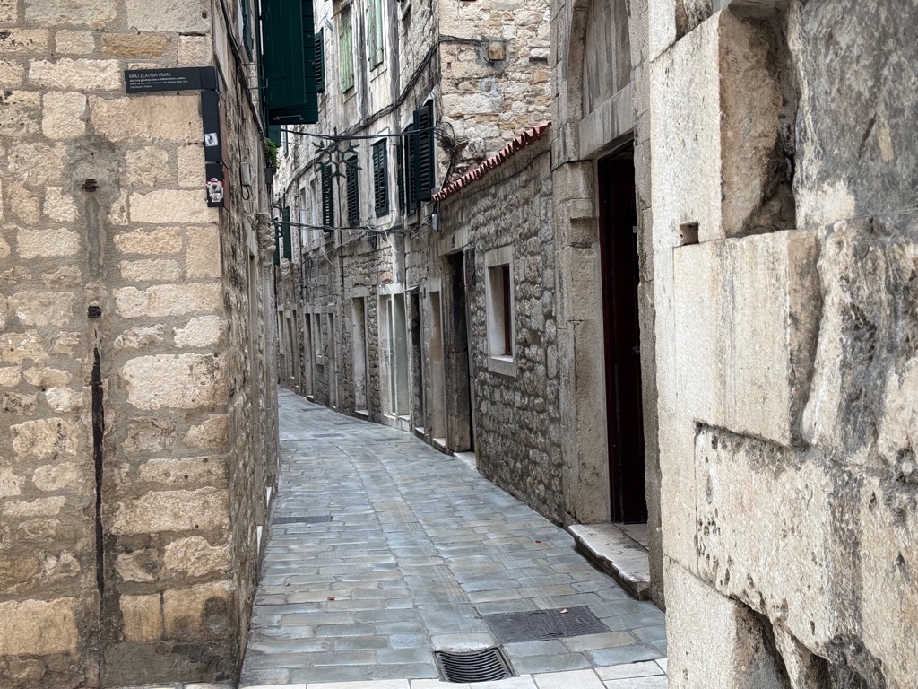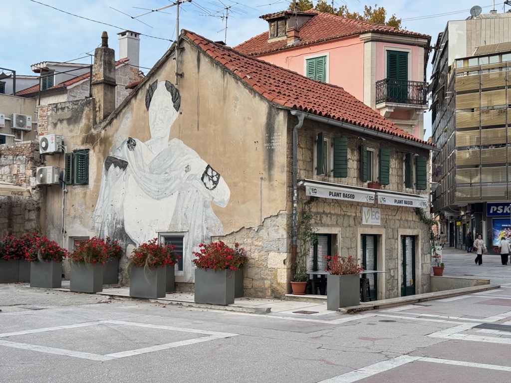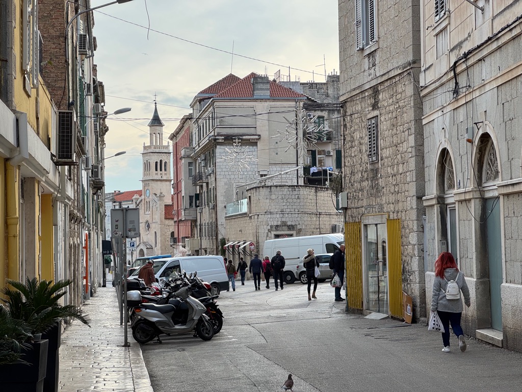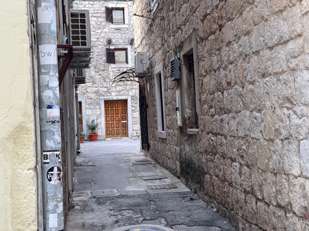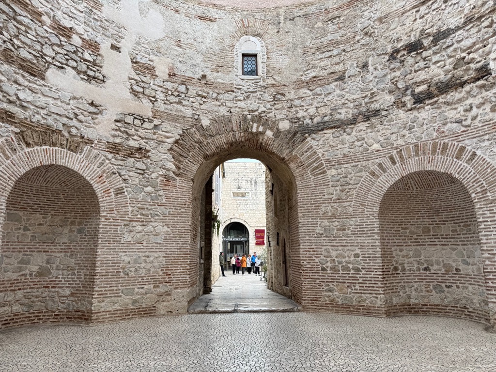 The group activities started with a tour of Diocleatian’s Palace. Half of it was for Diocleatian’s personal use, and half was a military garrison. Nowadays it forms about half the old town of Split, with shops, hotels, and residences. Then there was a walk up a hill to see the town from above, followed by free time.