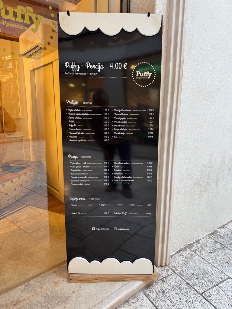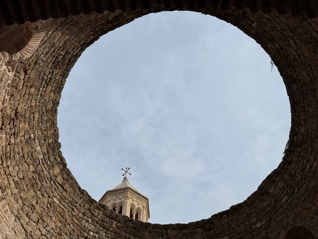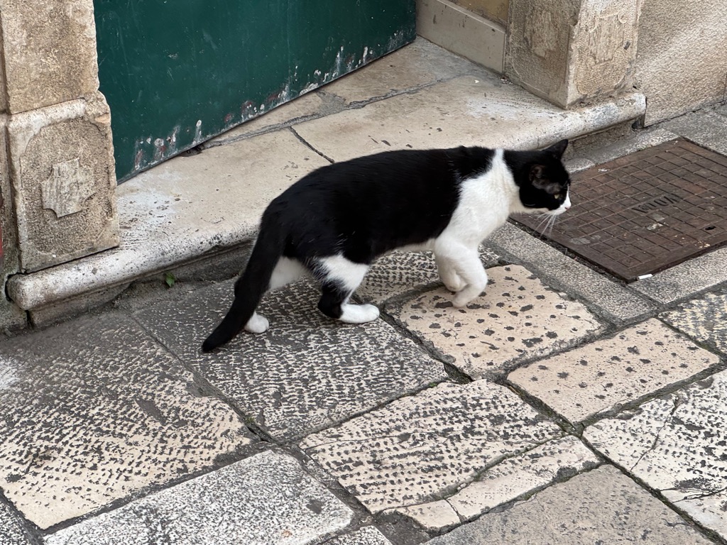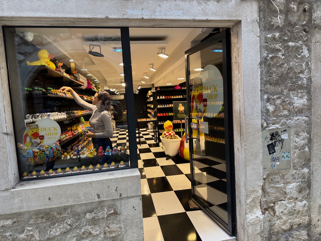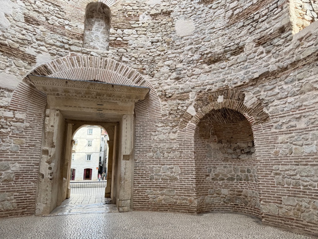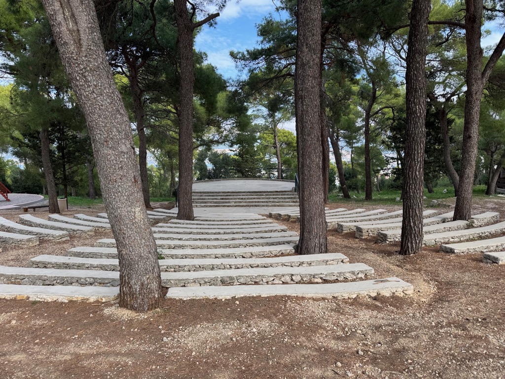 The group activities started with a tour of Diocleatian’s Palace. Half of it was for Diocleatian’s personal use, and half was a military garrison. Nowadays it forms about half the old town of Split, with shops, hotels, and residences. Then there was a walk up a hill to see the town from above, followed by free time.