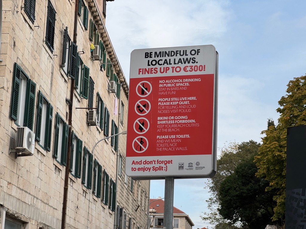 | Sign about how to behave. I like item 2, “For yelling and loud noises, visit Poljud.” (Poljud is the stadium.) |