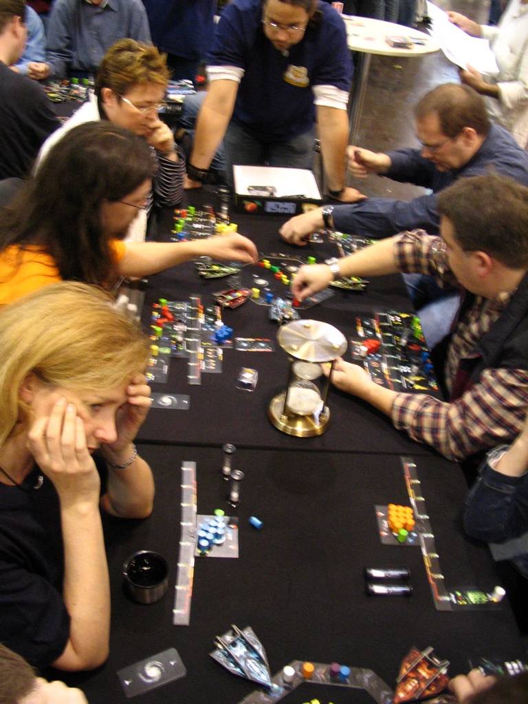 Two important awards are announced at Essen, the Essener Feder (Essen Feather) for well-written rules and the Deutscher Spiel Preis, voted on by industry stores, magazines, professionals, and game clubs. However, I give more weight to the Spiel des Jahres (Game of the Year), which is voted on by German board game critics, and which is not awarded at Essen.