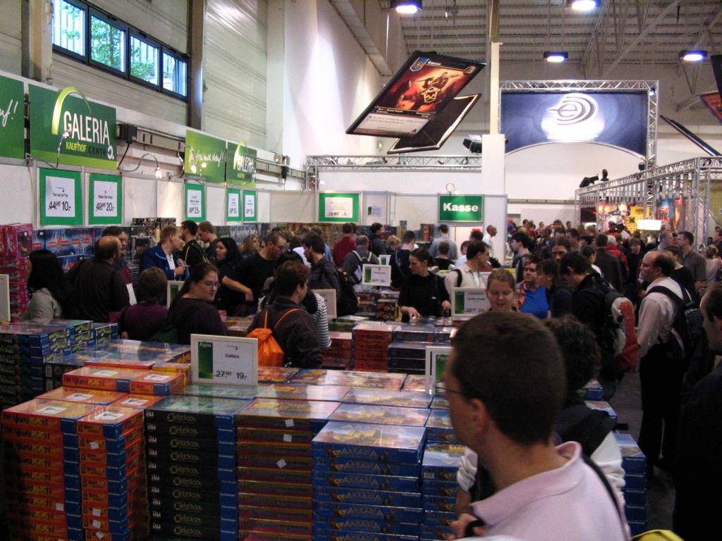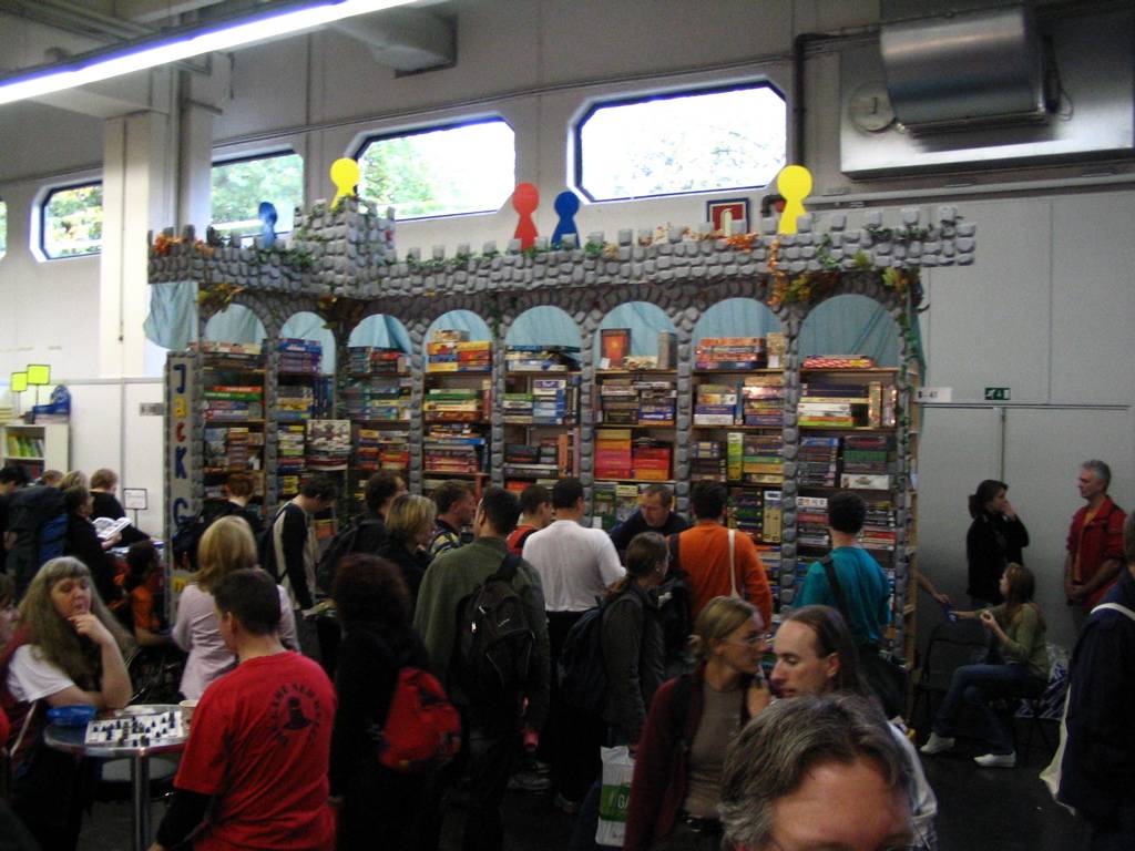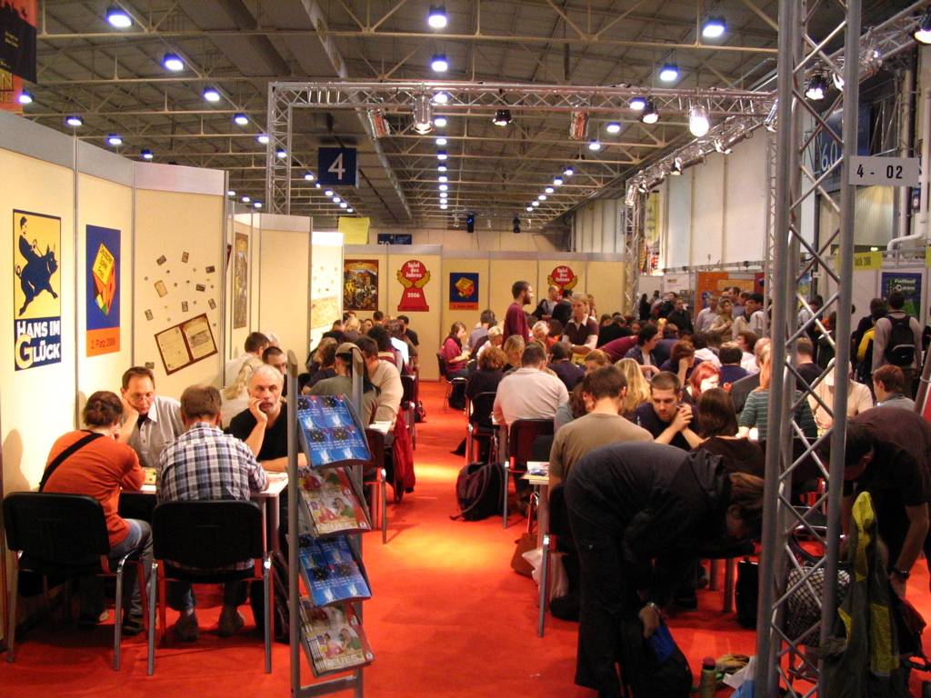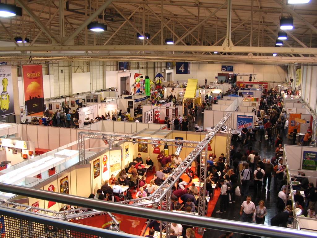 Essen is a city of about 600,000 people, but few people outside of Germany know the city. It is famous among gamers for Essen Spiel Tage (Essen Game Days), the world’s largest game fair. Large and small publishers exhibit their games, vendors sell new games and old, and gamers play and buy games. There are many tables for playing games. Most of the activity centers around strategy board games and similar things. There is also a hall for comics, another focused a bit more on role-playing games, and there is a kids’ area. (For gamers considering a trip to Essen Spiel Tage, Board Game Geek has a FAQ.)