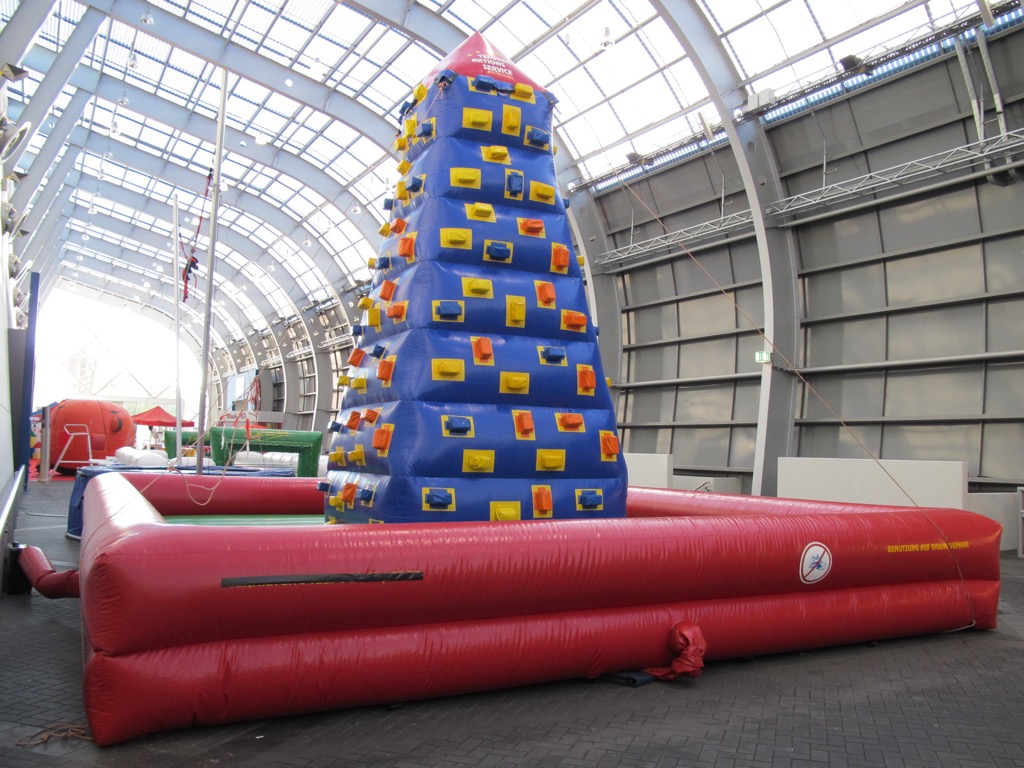 | Inflatable rock-climbing tower. |