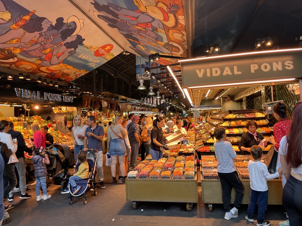Mercat de la Boqueria is a large market with lots of stalls, mostly selling