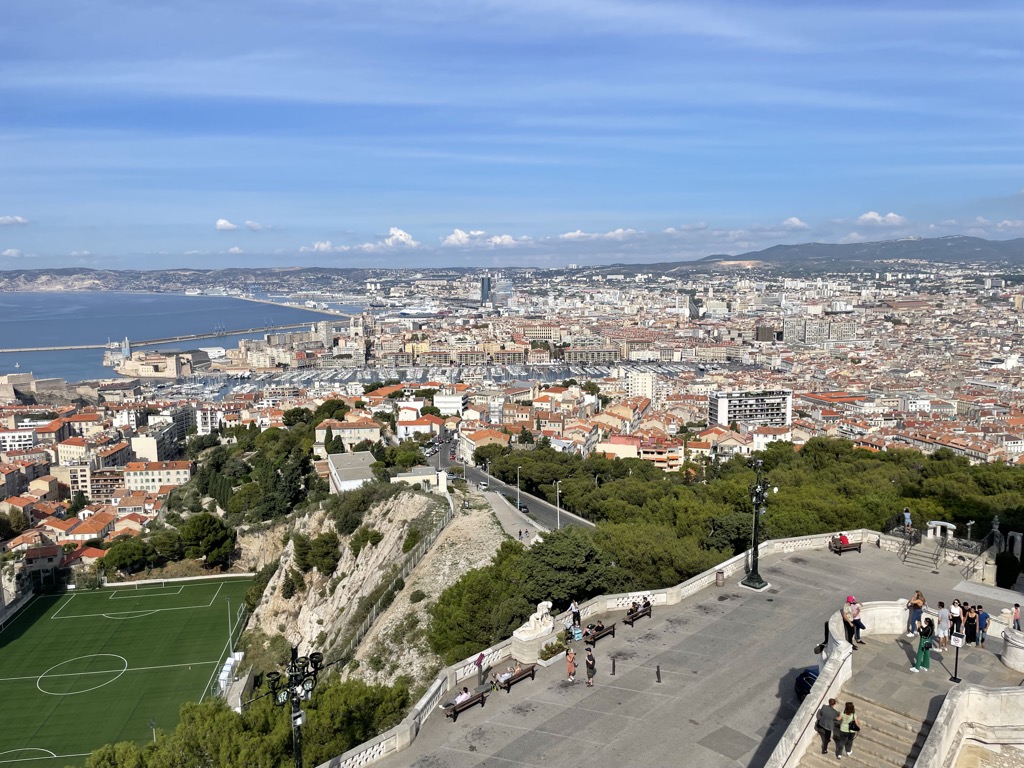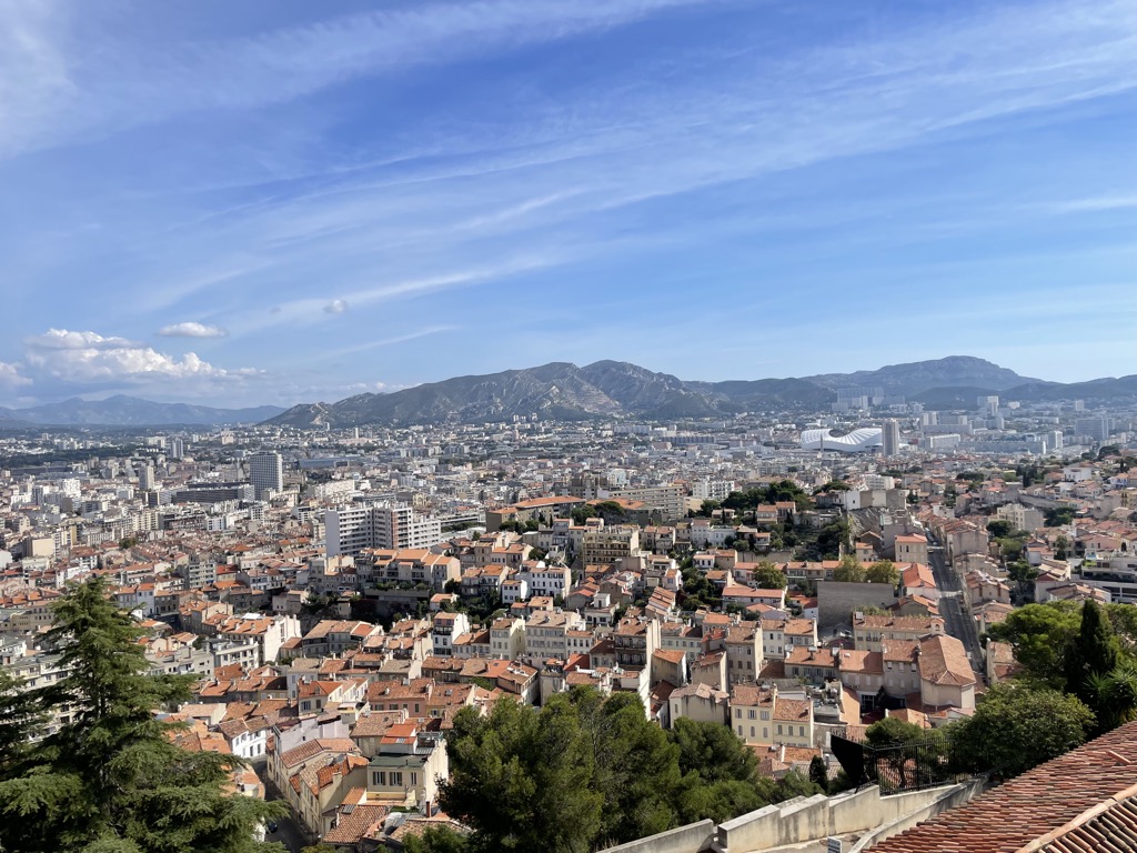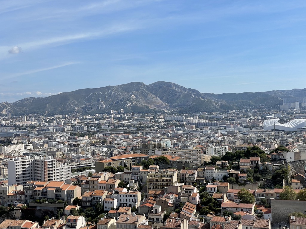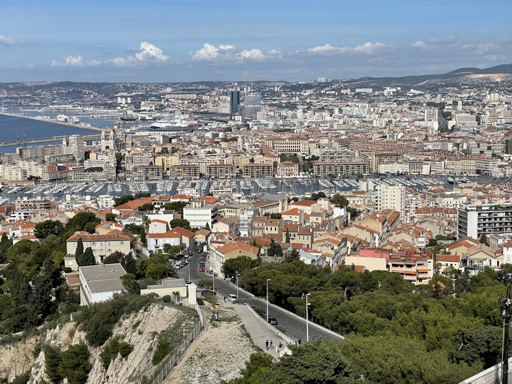 | Marseille from Basilique Notre Dame de la Garde. What are the terraced slopes in the background? |