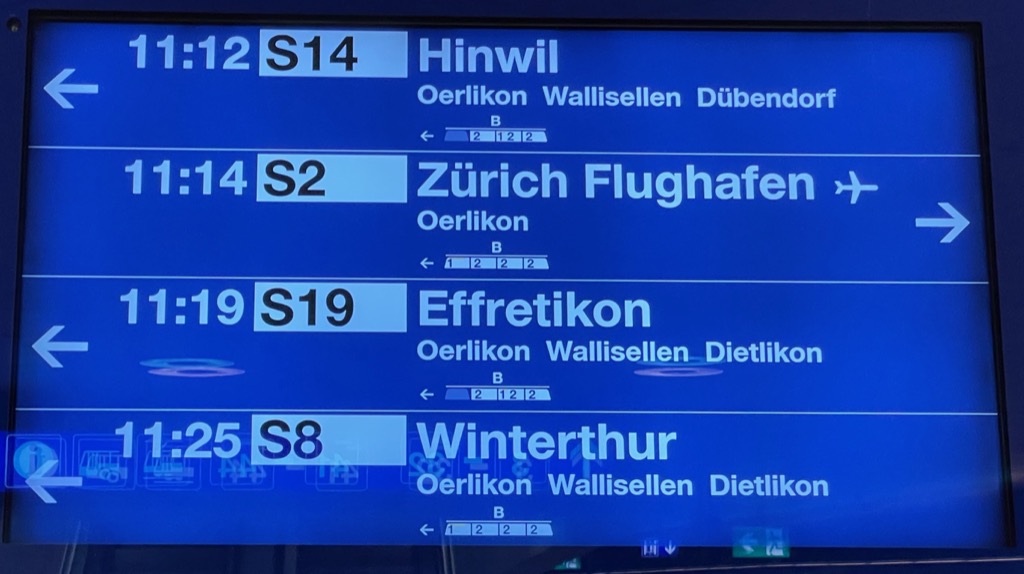 train to a mall, Glattzentrum, instead. Recall the awful train sign in