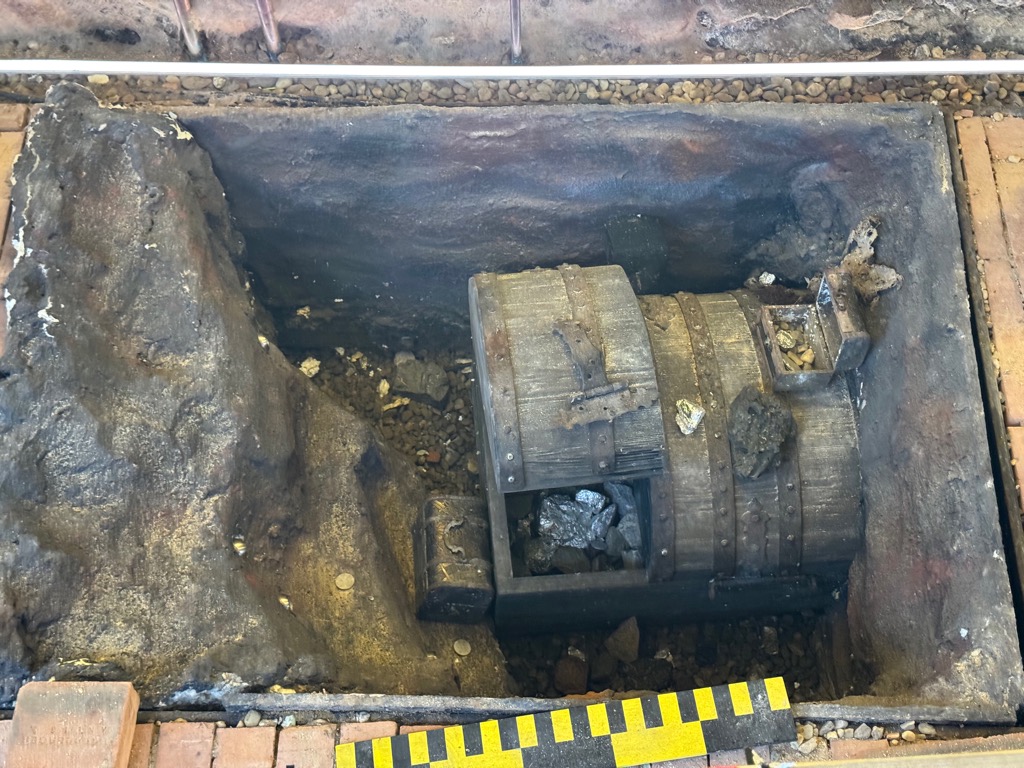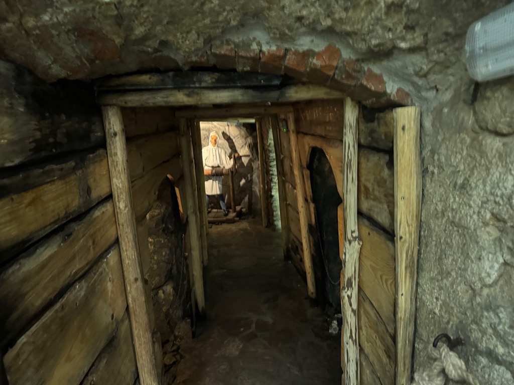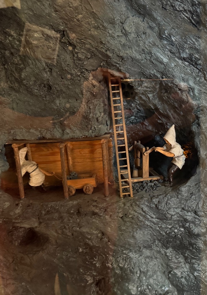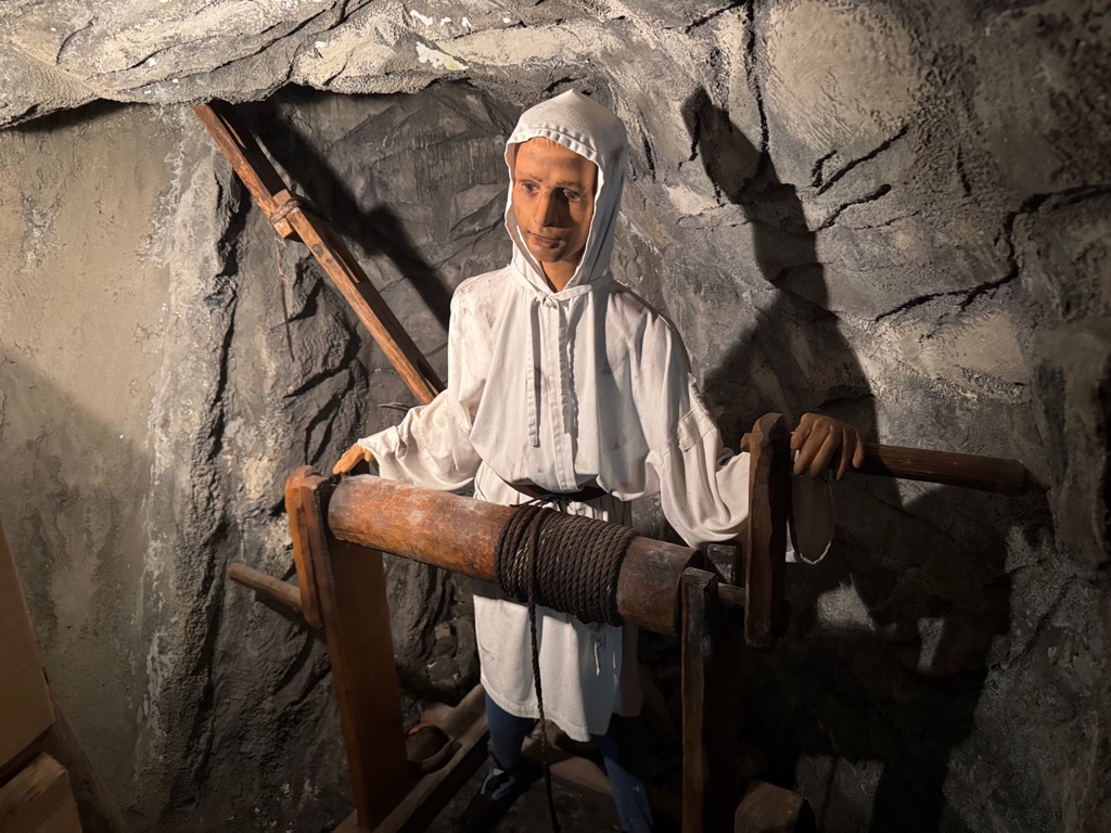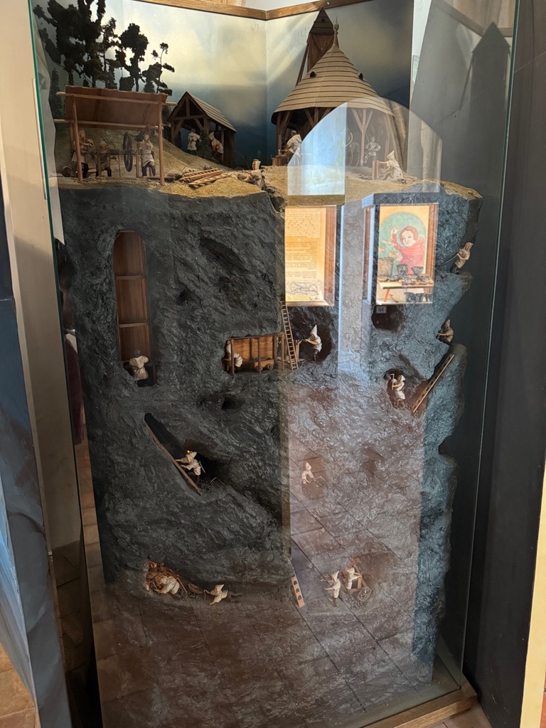 | Saint Barbara sculptures in mine museum. Original from late 1700s on the left, reconstruction from 2011 on the right. |