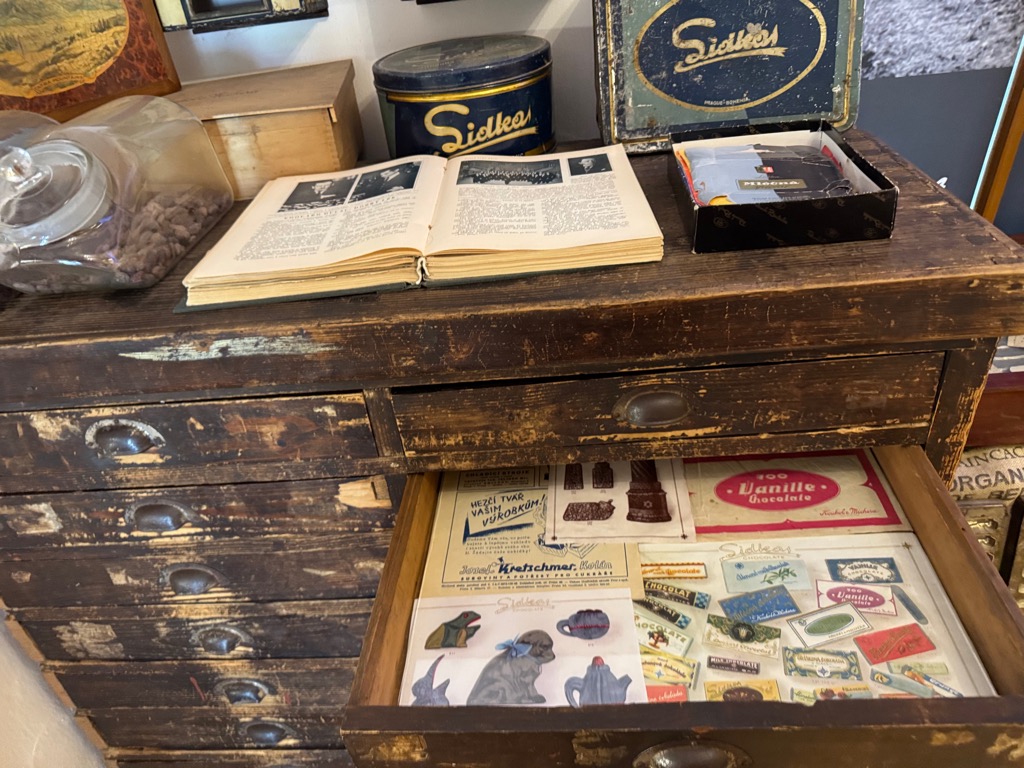 | Andělské Pralinky chocolates in Cafe Dačický. |