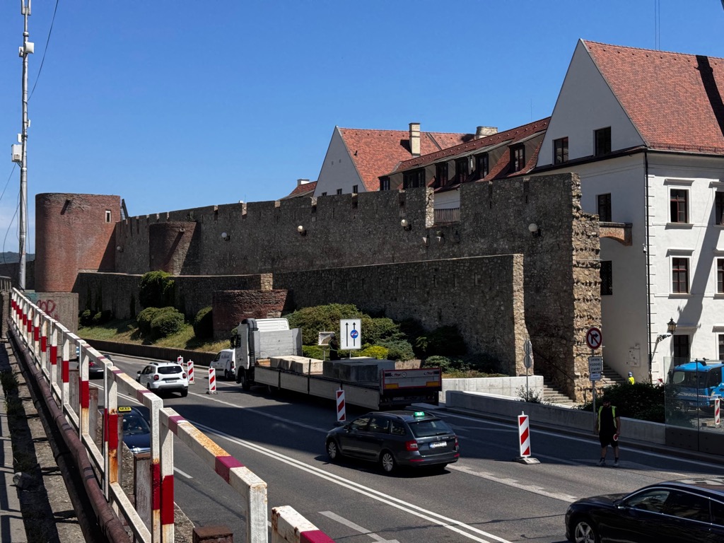 | Most SNP (Bridge of the Slovak National Uprising). The saucer-shaped structure at top is called the UFO. The bridge honors the 1944 resistance movement against the Nazis. |
