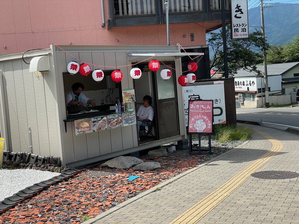 | Akichan food stand. The broken roof slate as ground cover is interesting. |