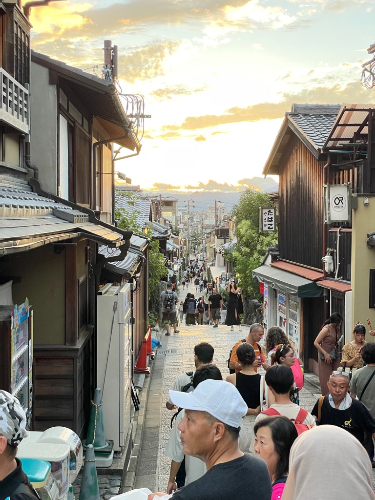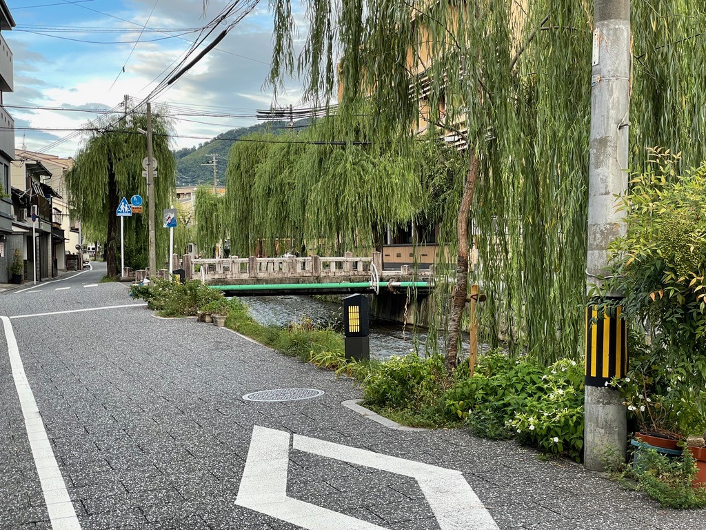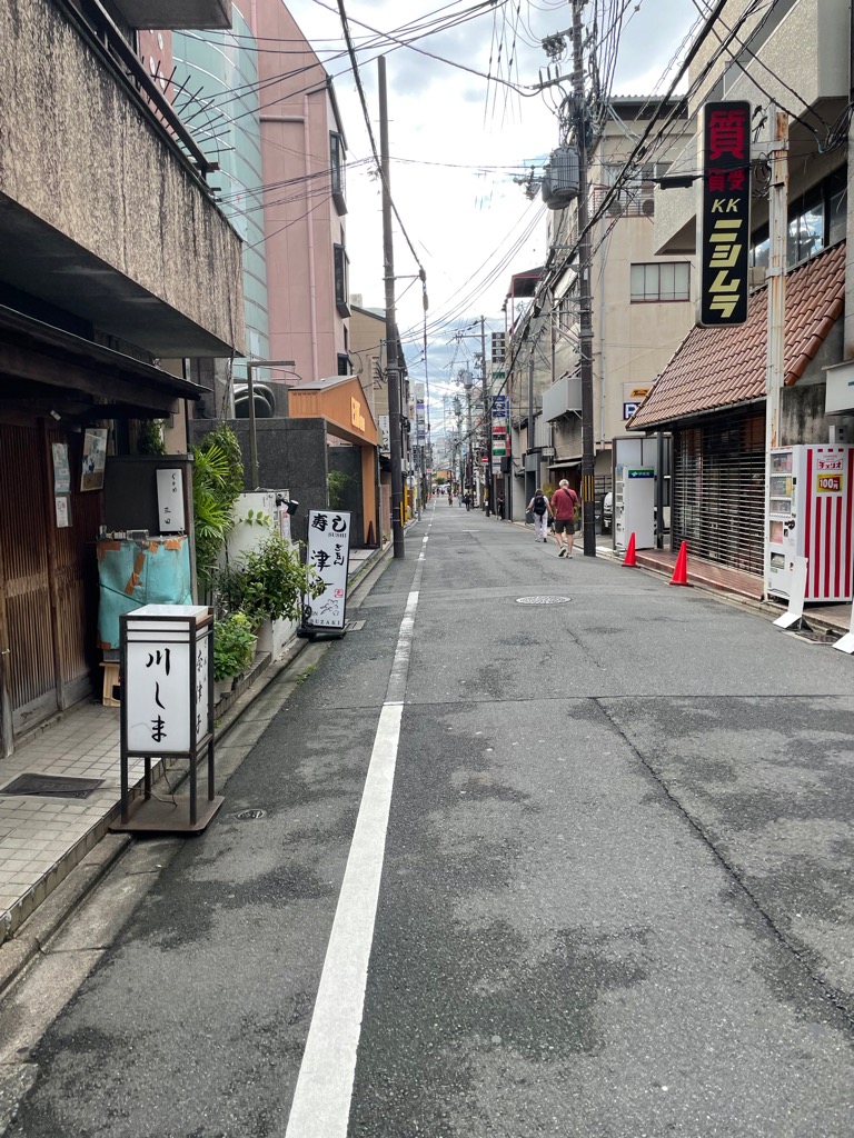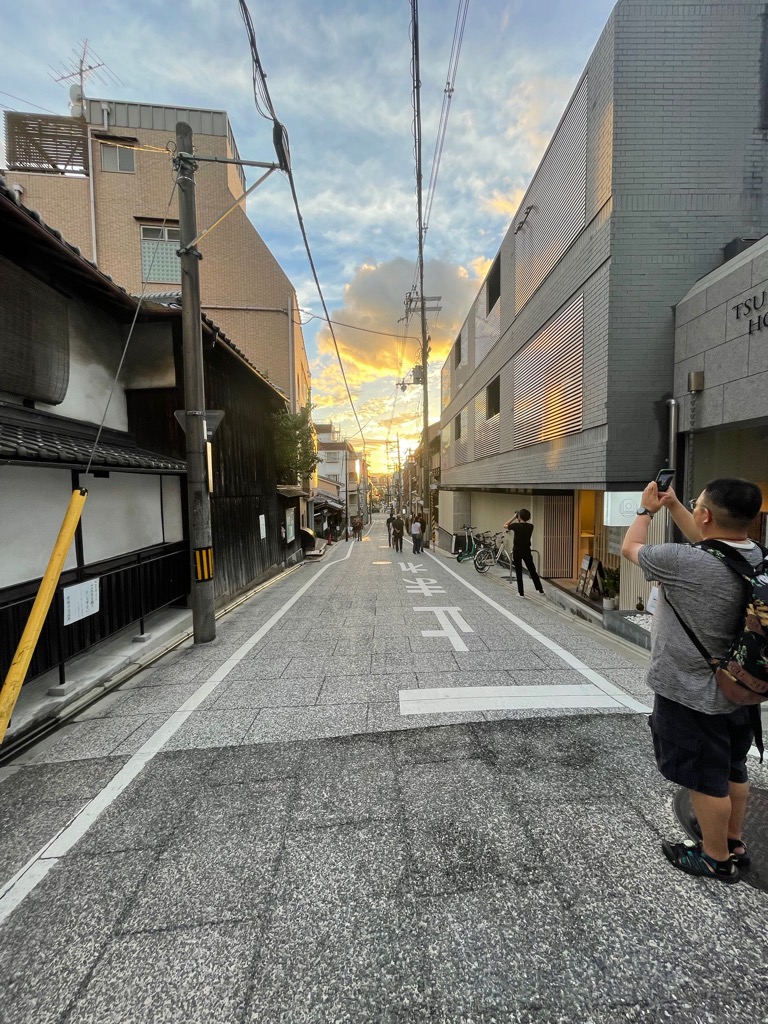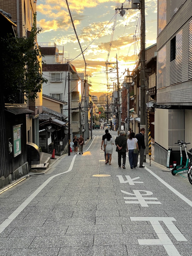 | Kyoto. There are lots of narrow streets with little room for pedestrians. But it works. Drivers drive at an appropriate speed, and people pass each other. |