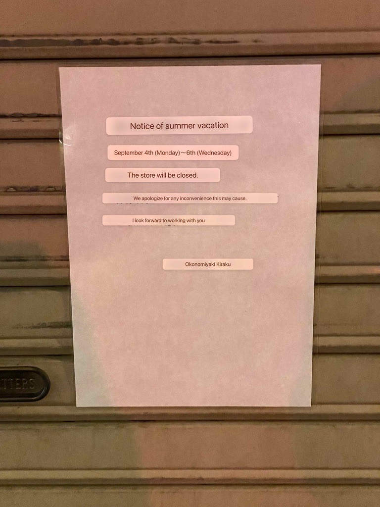 | Kiraku. The place I had planned for dinner was closed for vacation. |