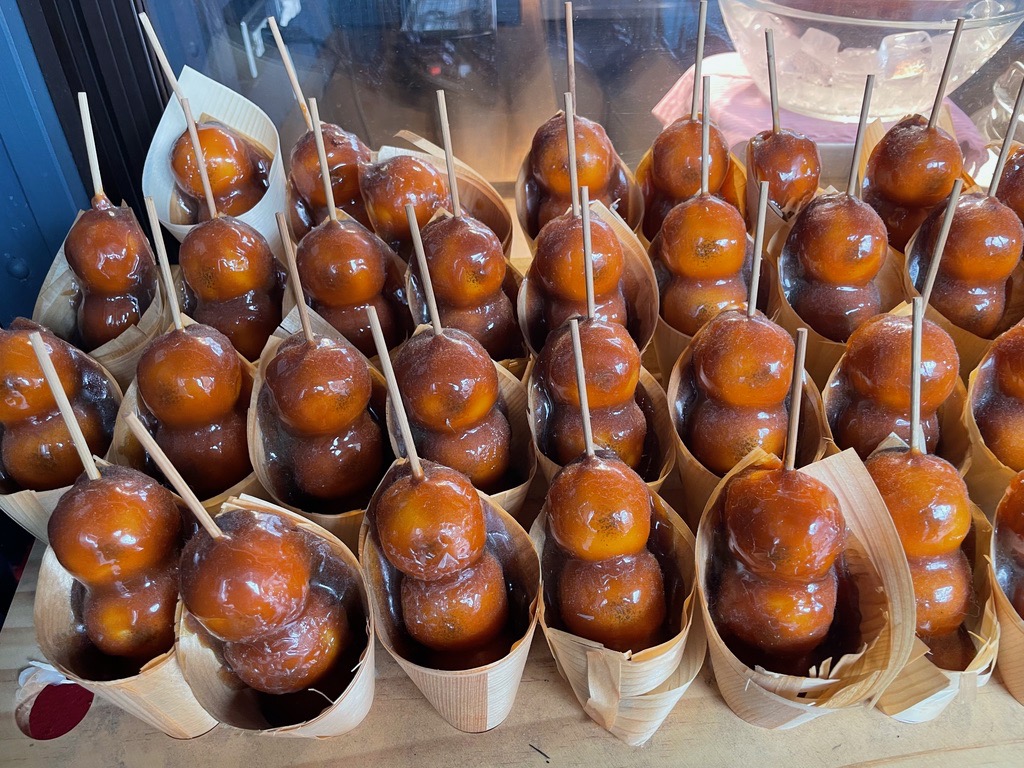 | Mitarishi dumplings. These were soft dough with a thick, slightly sweet sauce, not unlike some mix of barbecue sauce and duck sauce. |