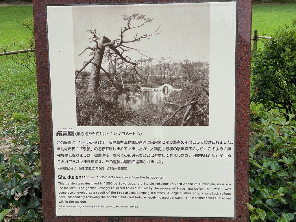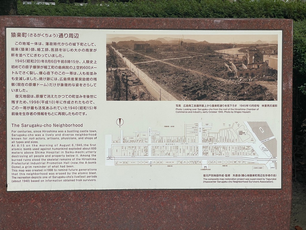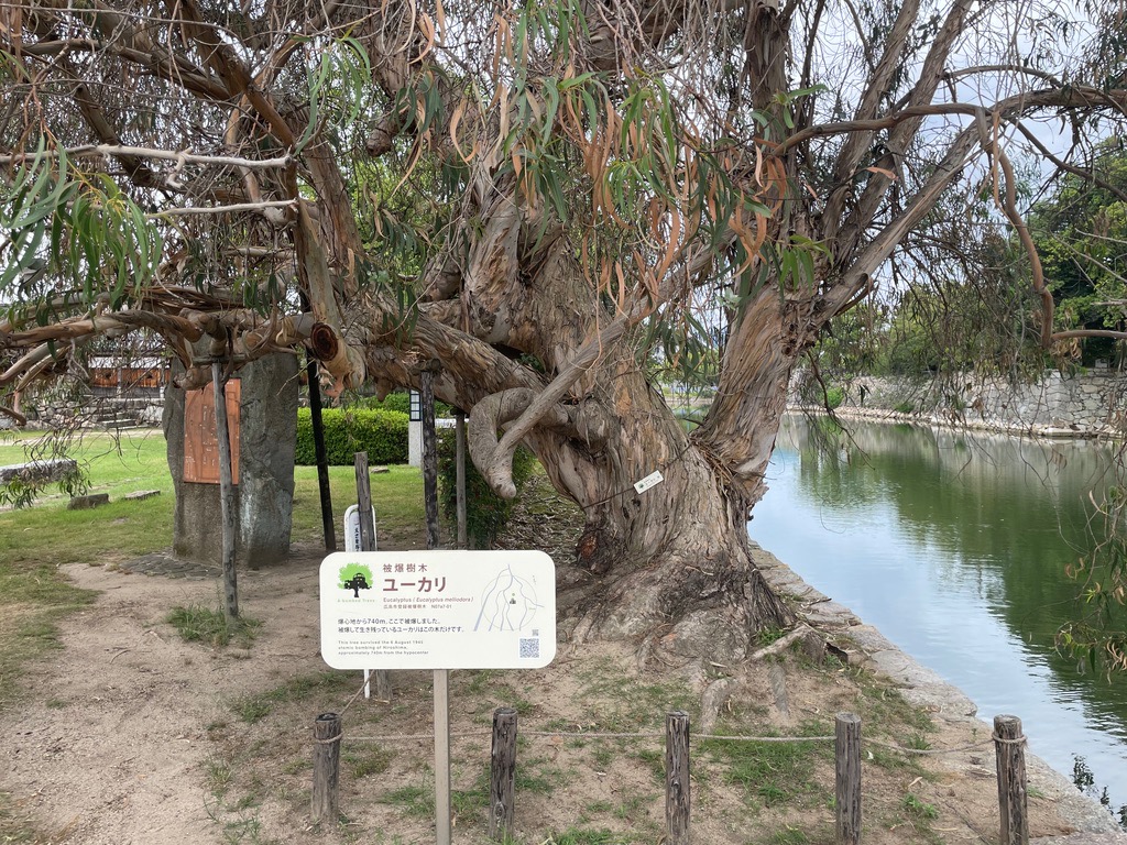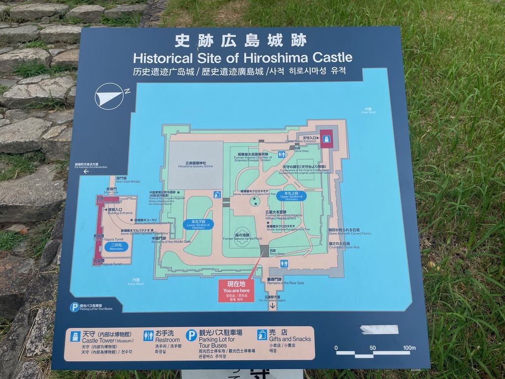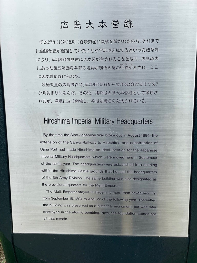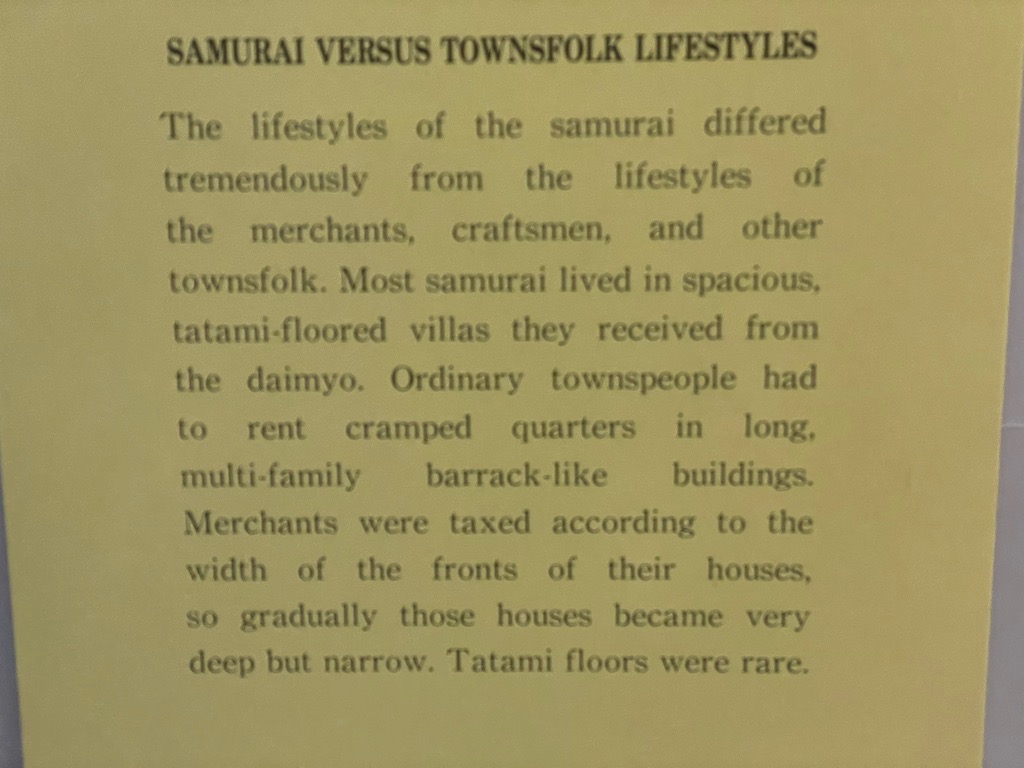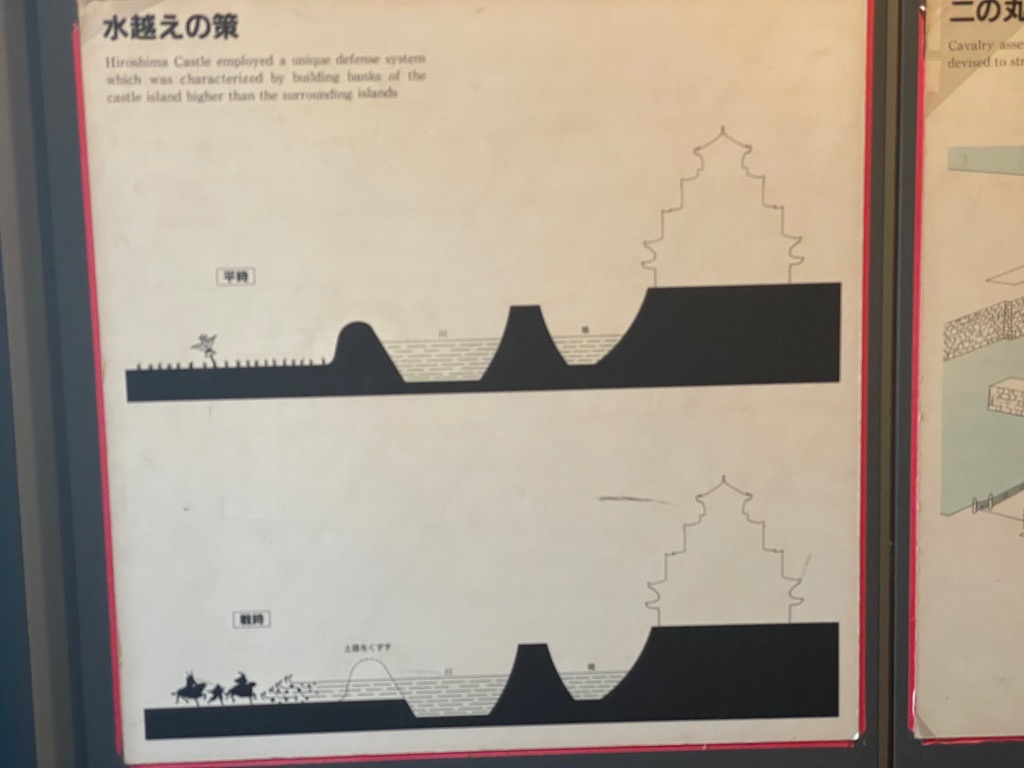 | Hiroshima Castle. This sign about taxes based on width causing deep but narrow houses reminded me of some other country where taxes were based on windows. |