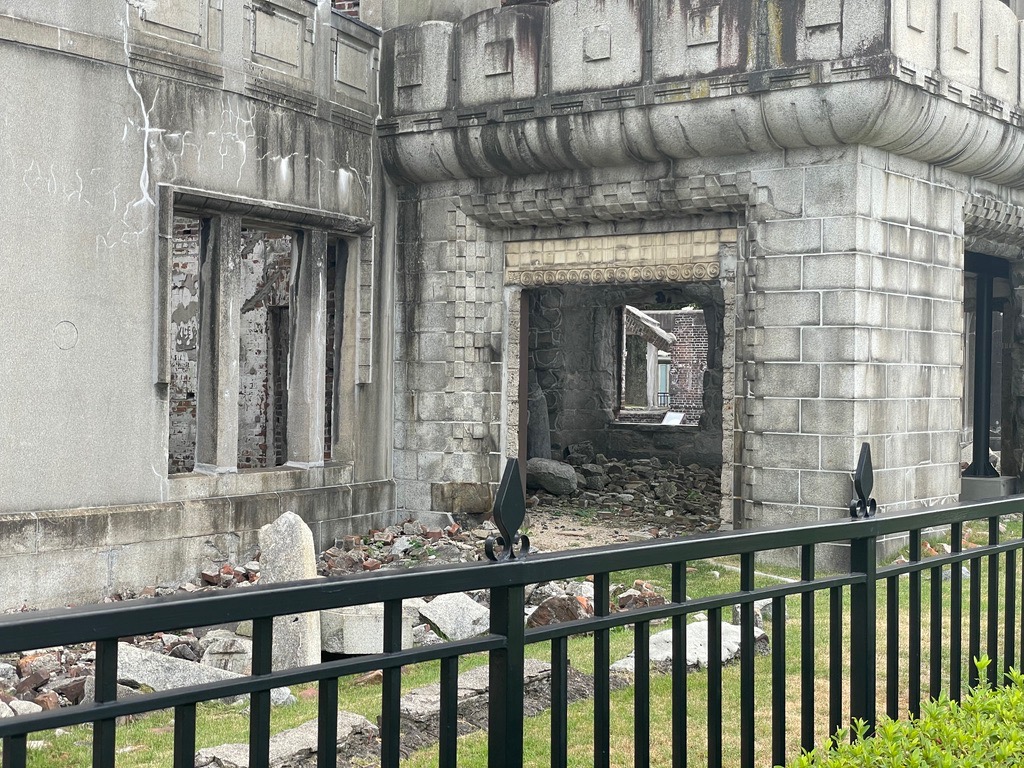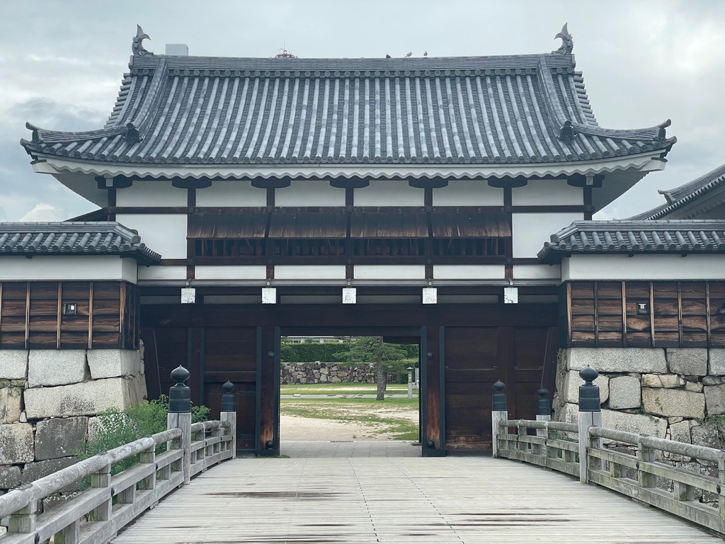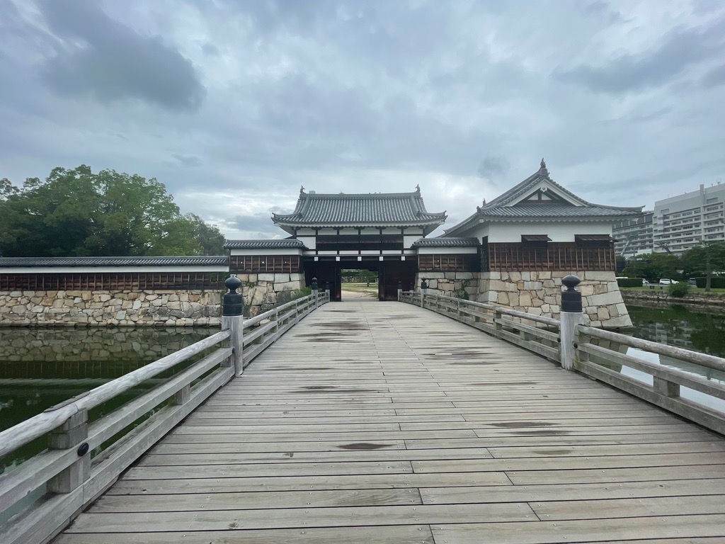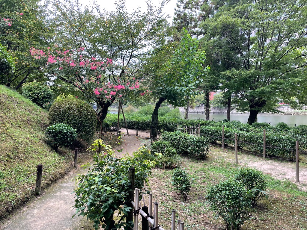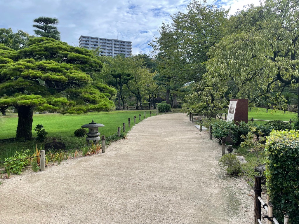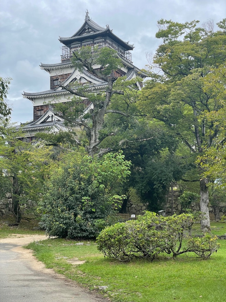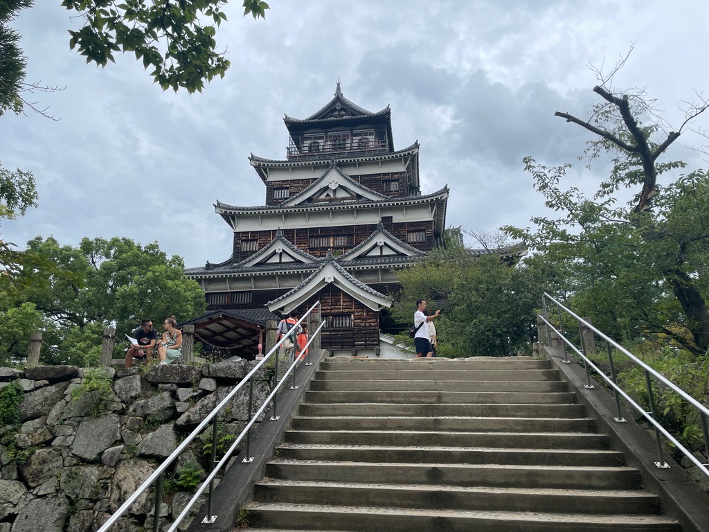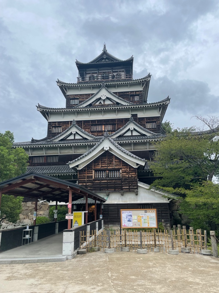 | Hiroshima Castle. This sign about taxes based on width causing deep but narrow houses reminded me of some other country where taxes were based on windows. |