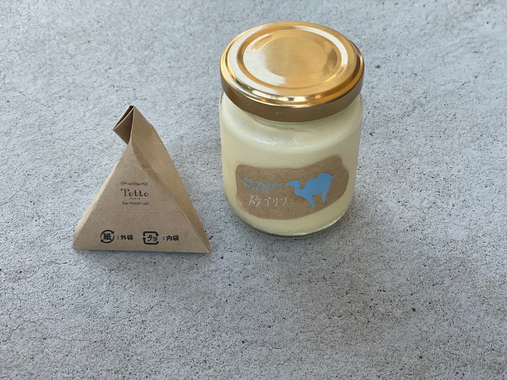 | Totto Puri Sand Pudding. The tetrahedron contains powdered caramel (looks like sand) you mix into the pudding. |