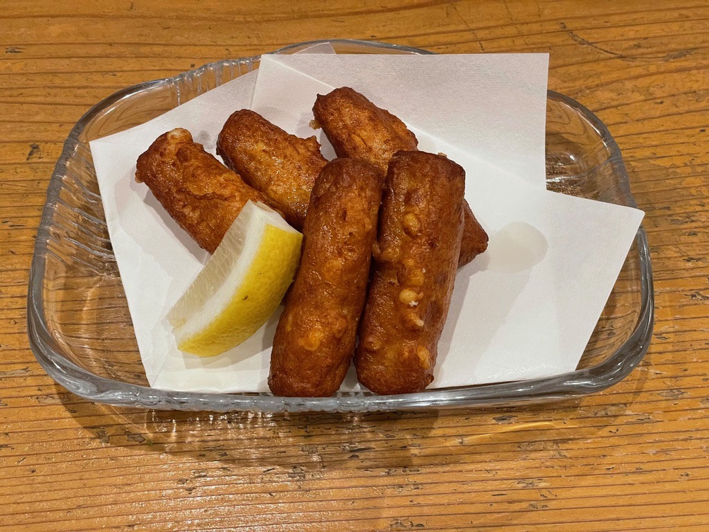 | Jujuan cheese tempura / cheese balls. Where is the cheese? That tiny yellow spot? |