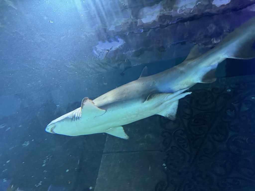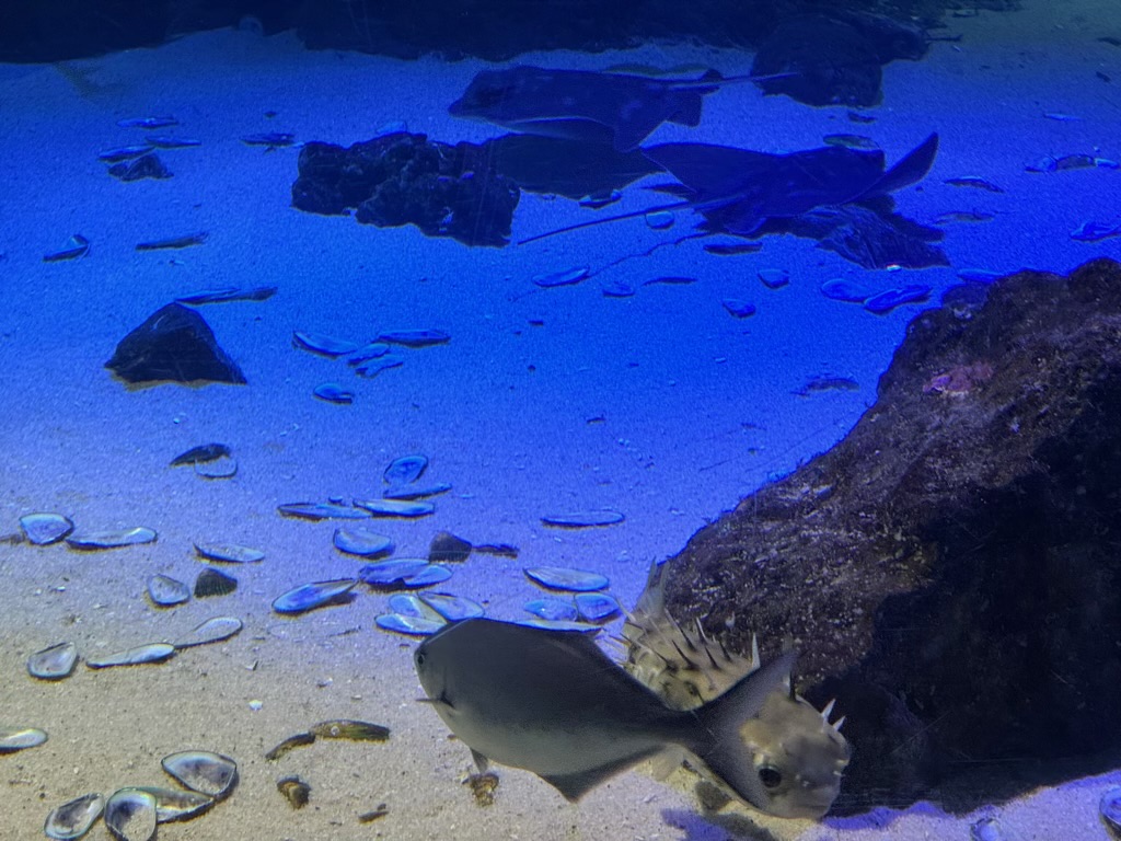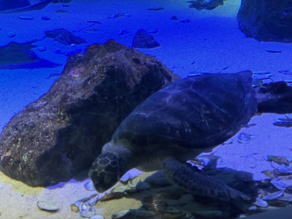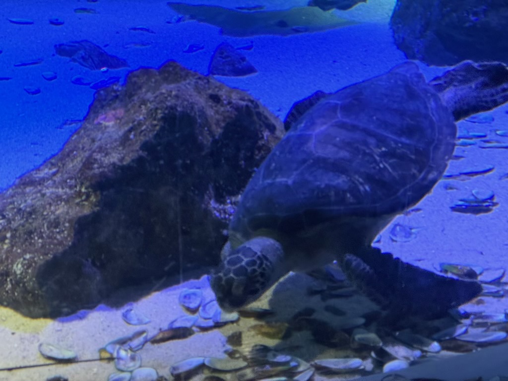 It has a damaged flipper but was doing a pretty good job of snapping up clams, holding the meat with its beak, and pulling the rest of the clam away.